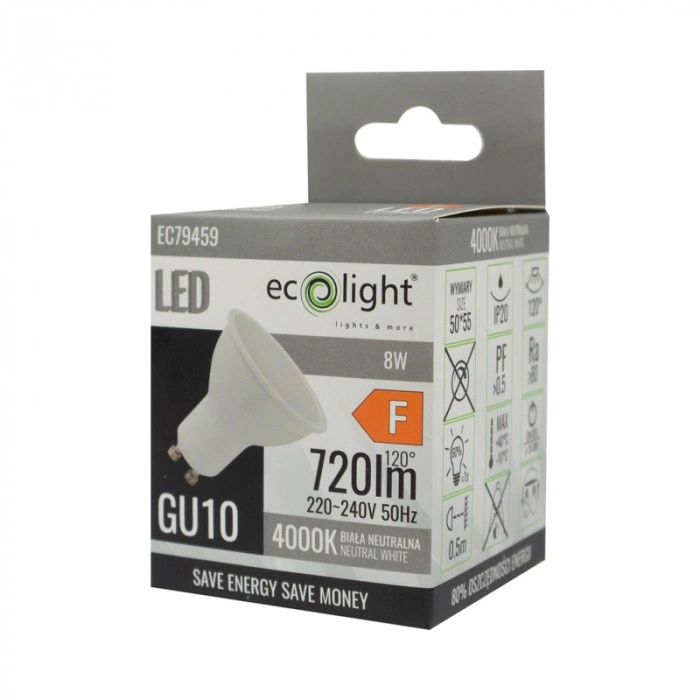 Objevte jas, po kterém jste vždy toužili, s reflektorovou žárovkou LED GU10 od společnosti Ecolight. Tato žárovka s výkonem 8 W a světelným tokem 720 lm nabízí účinnost 90 lm/W, což z ní činí energeticky úspornou volbu pro každou domácnost nebo kancelář. Její neutrální bílá barva s teplotou 4000 K se dokonale hodí do různých místností a poskytuje příjemné, přirozené světlo.