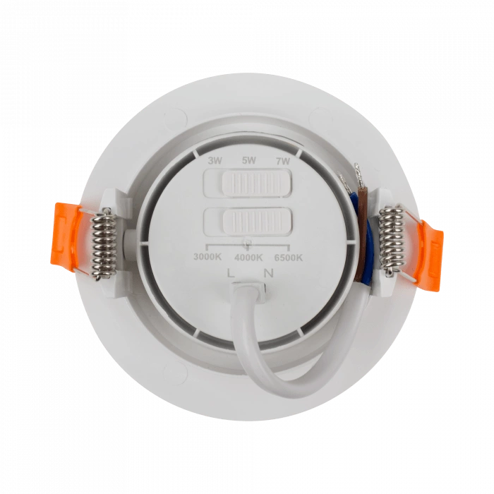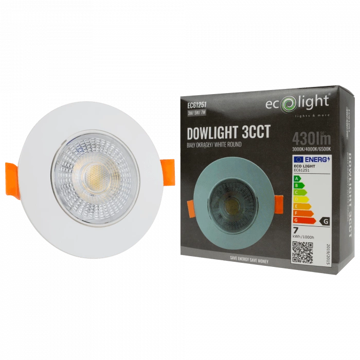 Přehodnoťte své osvětlení pomocí moderního svítidla DOWNLIGHT pro vestavbu od společnosti Ecolight! Toto elegantní kruhové LED svítidlo v klasické bílé barvě je zárukou stylu a všestrannosti, která dokonale zapadne do každého interiéru. Díky možnosti volby barvy světla (od teplé bílé 3000K, přes neutrální 4000K až po studenou 6500K) a nastavitelnému světelnému výkonu (3W, 5W, 7W) si můžete atmosféru v místnosti upravit přesně podle svých potřeb. Díky intuitivnímu systému spínačů máte vše plně pod kontrolou a instalace pomocí montážních pružin je rychlá a snadná.