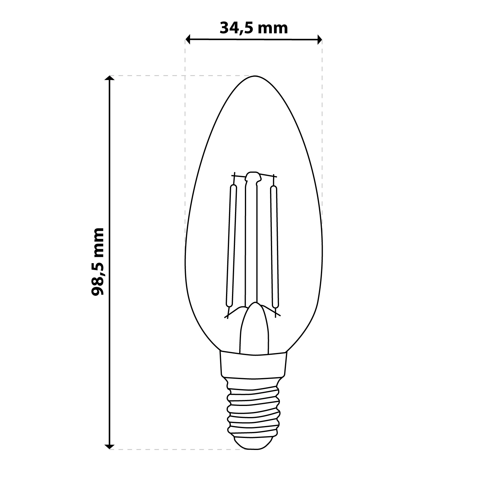 10x LED žárovka E14 Candle B35 2W = 25W 249lm 3000K Warm 360° FILAMENT LUMILED