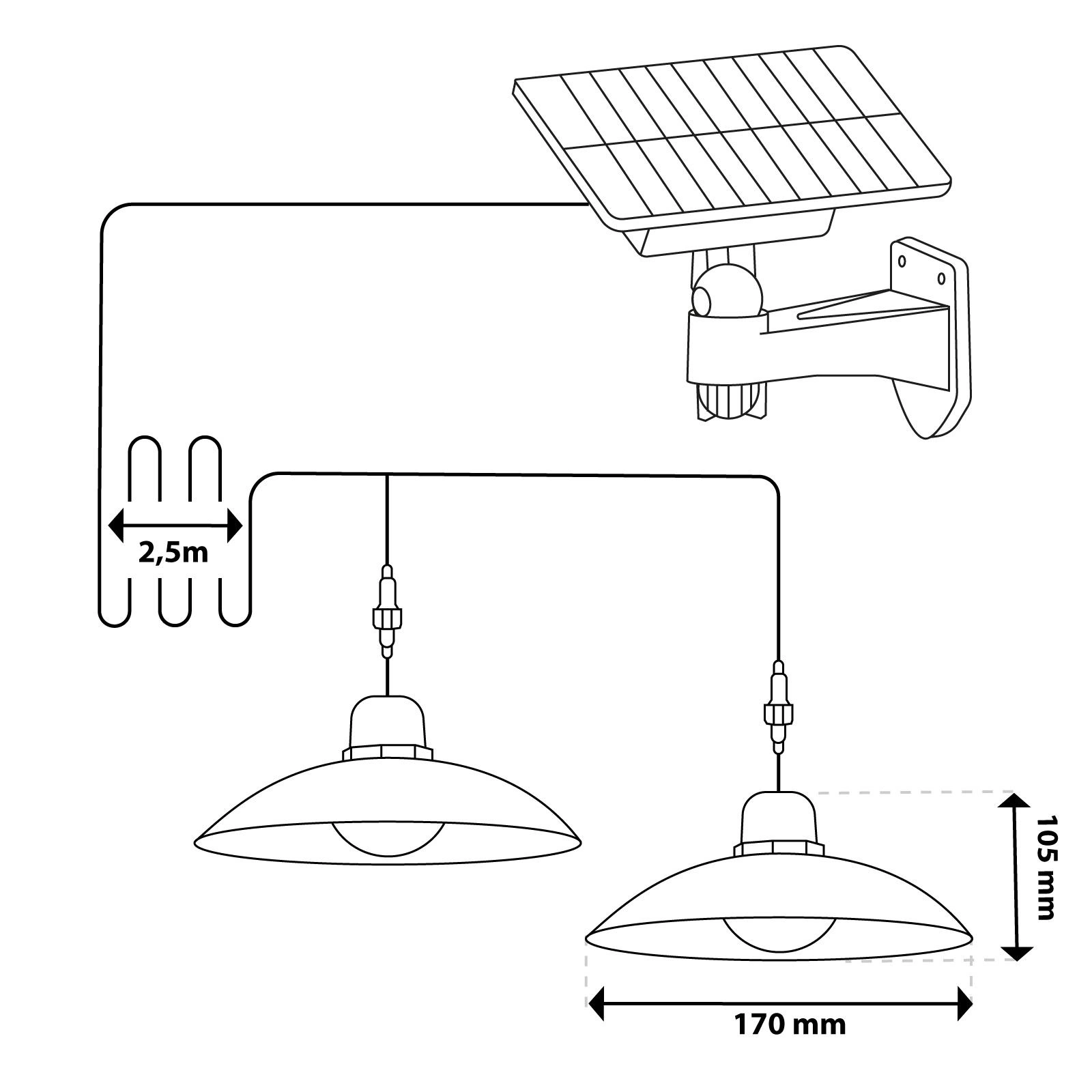 Lampa je vybavena praktickou funkcí ON/OFF pro rychlé zapnutí a vypnutí. Tři úrovně jasu (25 %, 50 %, 100 %) umožňují přizpůsobit osvětlení situaci a programovatelná doba svícení (3 h, 5 h, 8 h) pomáhá efektivně hospodařit s energií. Díky nejmodernější technologii poskytuje komfort a úsporu energie a osvědčuje se v různých podmínkách. Je to funkční a spolehlivé řešení pro každého.