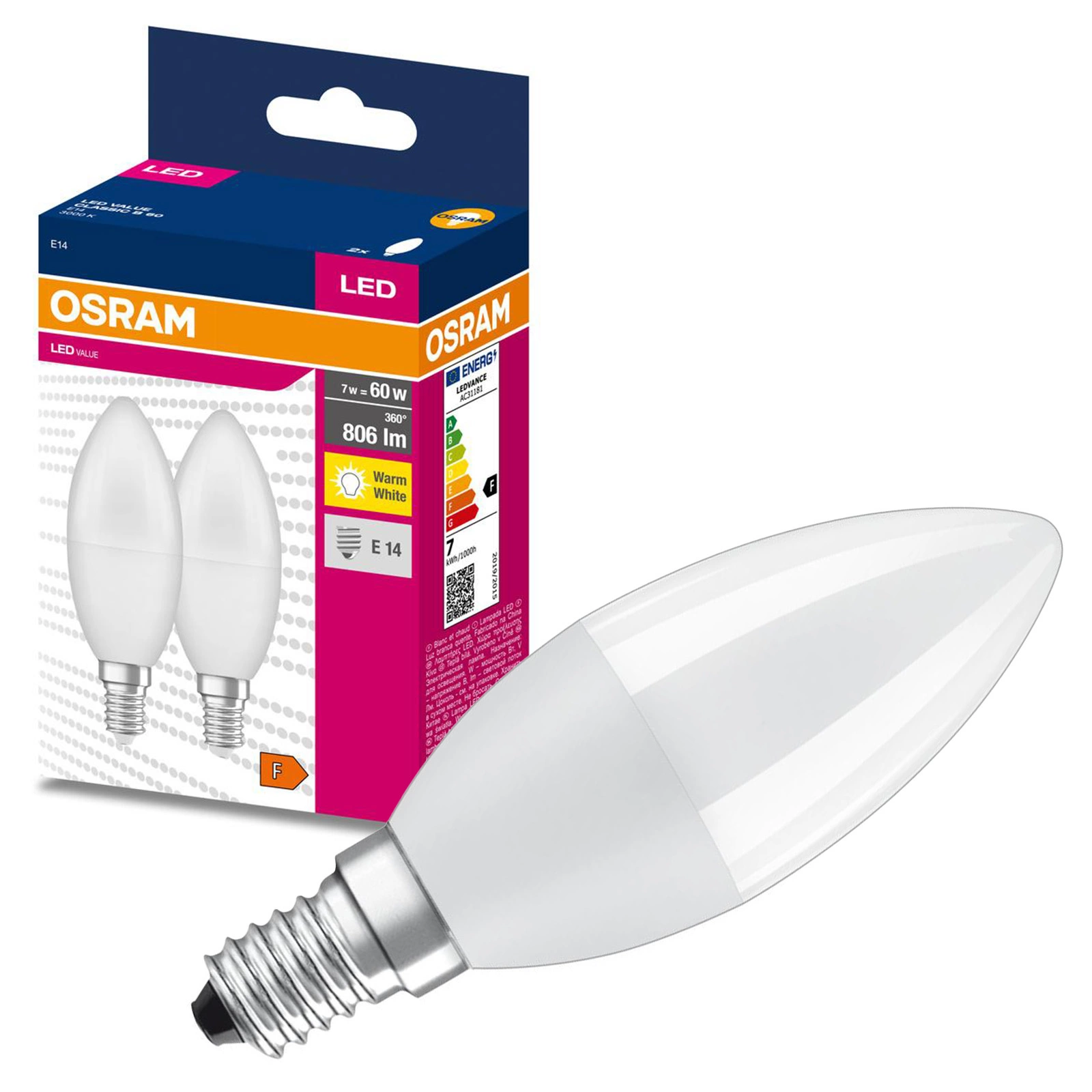 2PAK LED žárovka E14 B35 7W = 60W 806lm 3000K Hřejivost 220° OSRAM HODNOTA