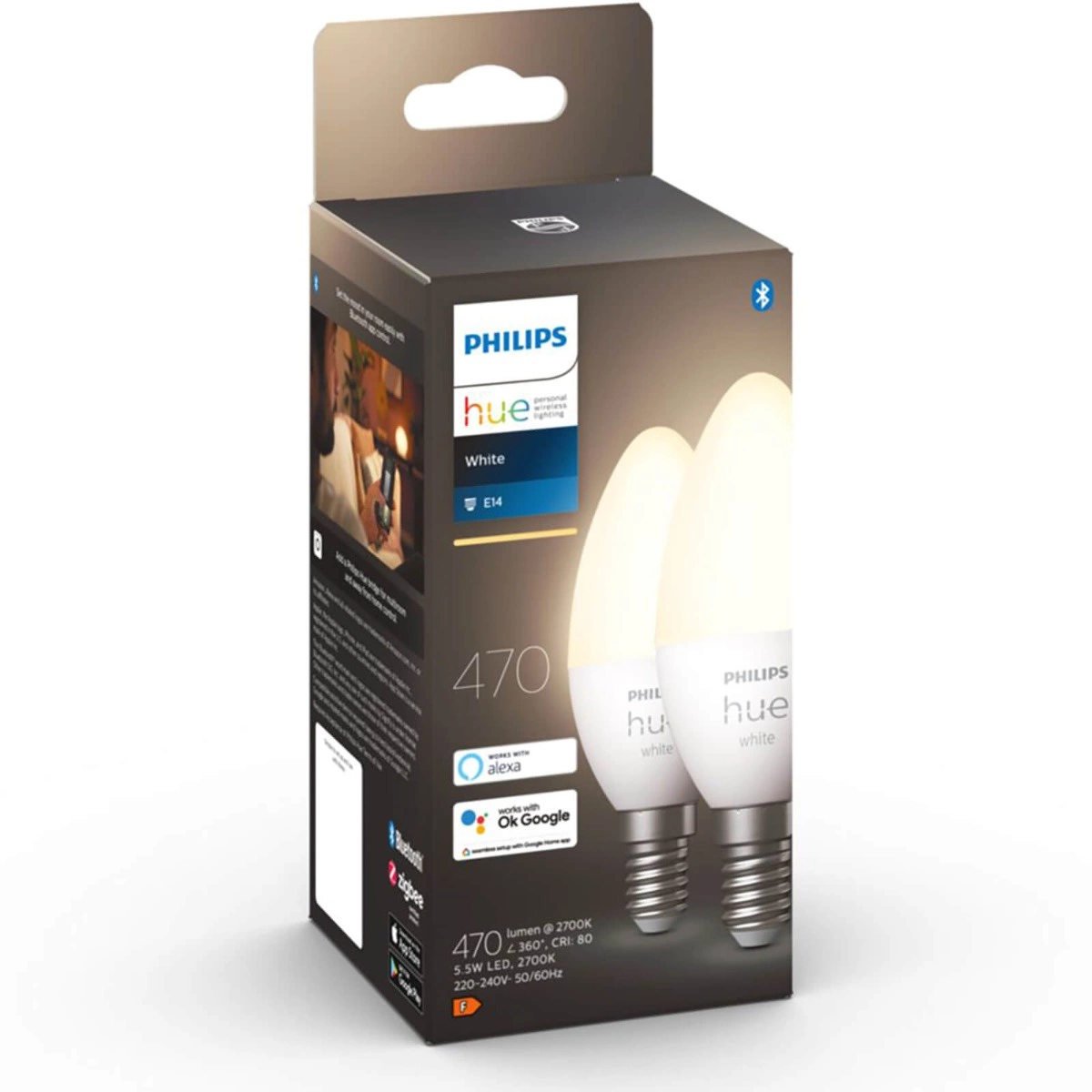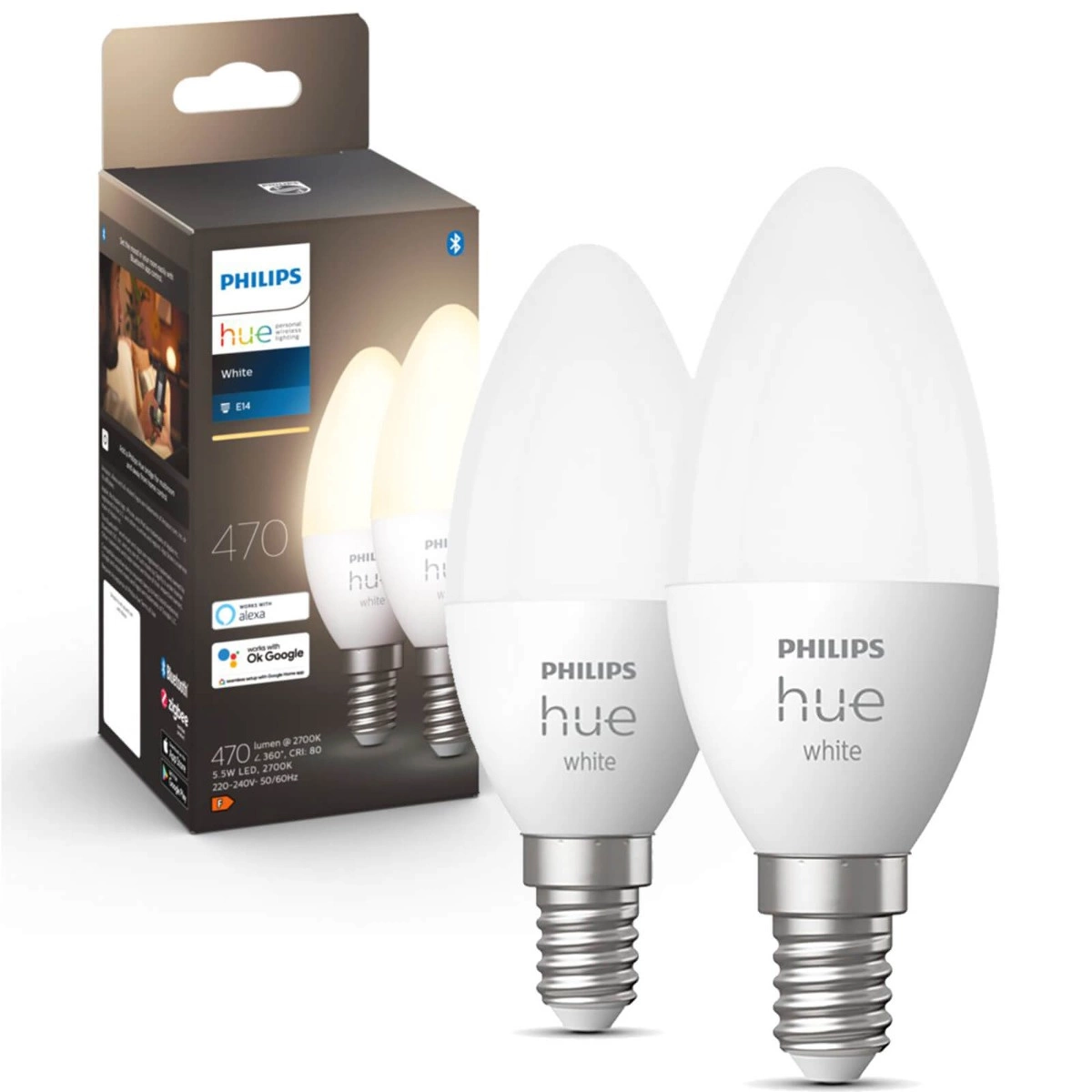 2PAK LED žárovka E14 B39 5,5W 2700K teplá PHILIPS HUE White Bluetooth Zigbee
