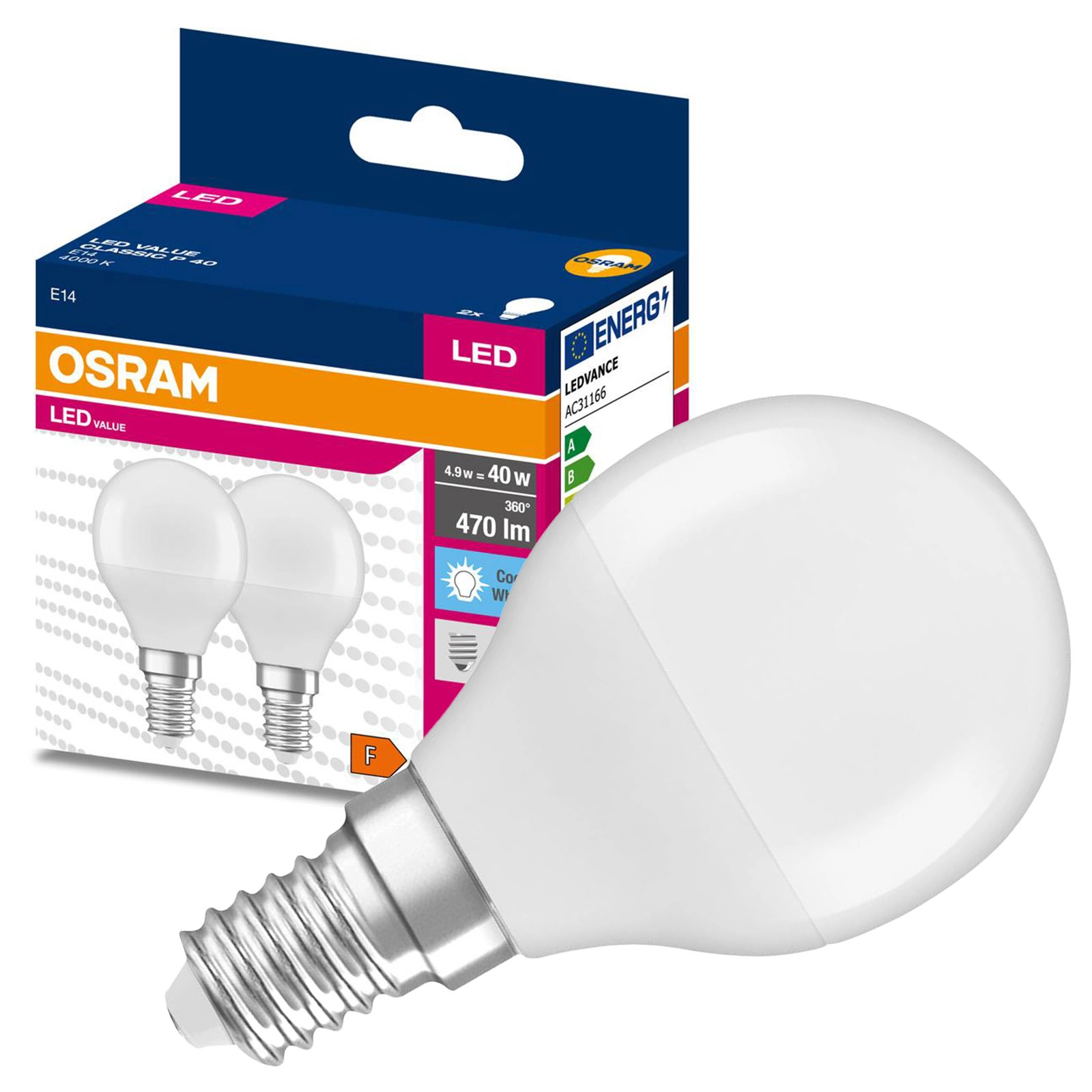 2PAK LED žárovka E14 P45 4,9W = 40W 470lm 4000K Neutrál 200° OSRAM HODNOTA