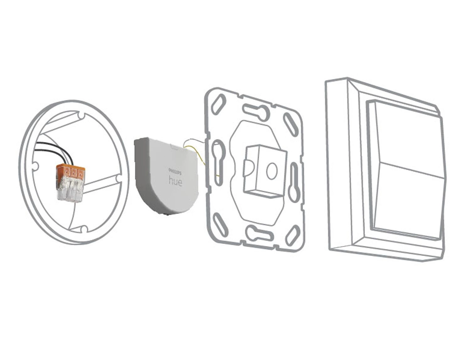 2x nástěnný vypínač uznávaný a respektovaný v oboru osvětlení Philips umožňuje ovládání celého inteligentního systému pomocí domovních vypínačů. Stačí pro ně nainstalovat speciální přepínač Philips Hue (instalace do elektrické krabice ve zdi za standardní vypínač). Vaše světla Hue budou neustále zapojena a k dispozici pro nastavit vaše oblíbené světelné aranžmá, jak pro vybranou lampu, tak pro celou místnost nebo zónu Hue. Díky nástěnnému spínacímu modulu jsou světla vždy připojena k napájení. Po konfiguraci s vybranými světelnými zdroji lze spínač ovládat v aplikaci Hue - umožňuje vám to přepínat mezi třemi uspořádáními osvětlení, zapnutí a vypnutí. Modul nástěnného spínače Philips Hue vyžaduje můstek Hue Bridge (prodává se samostatně). Pomocí můstku Hue můžete také přidat až 50 světelných zdrojů a 12 doplňků po celém domě, vytvářet časovače a rutiny a ovládat světla odkudkoli - uvnitř i vně domu