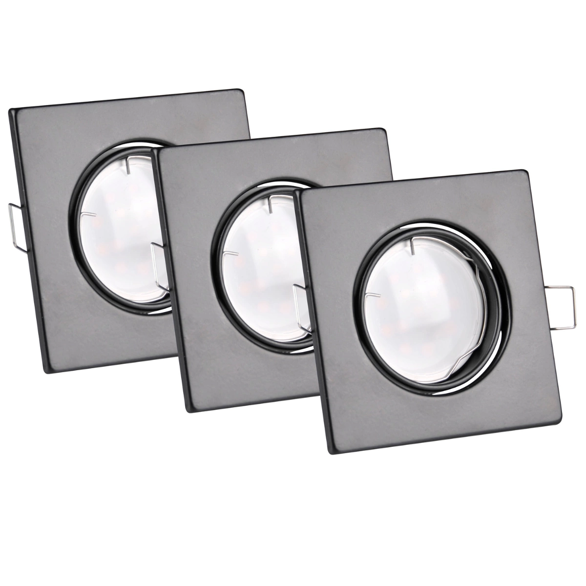 Sada 3x GOLDLUX pohyblivá halogenová žárovka, čtvercová, černá + GU10 3,5W LED žárovka