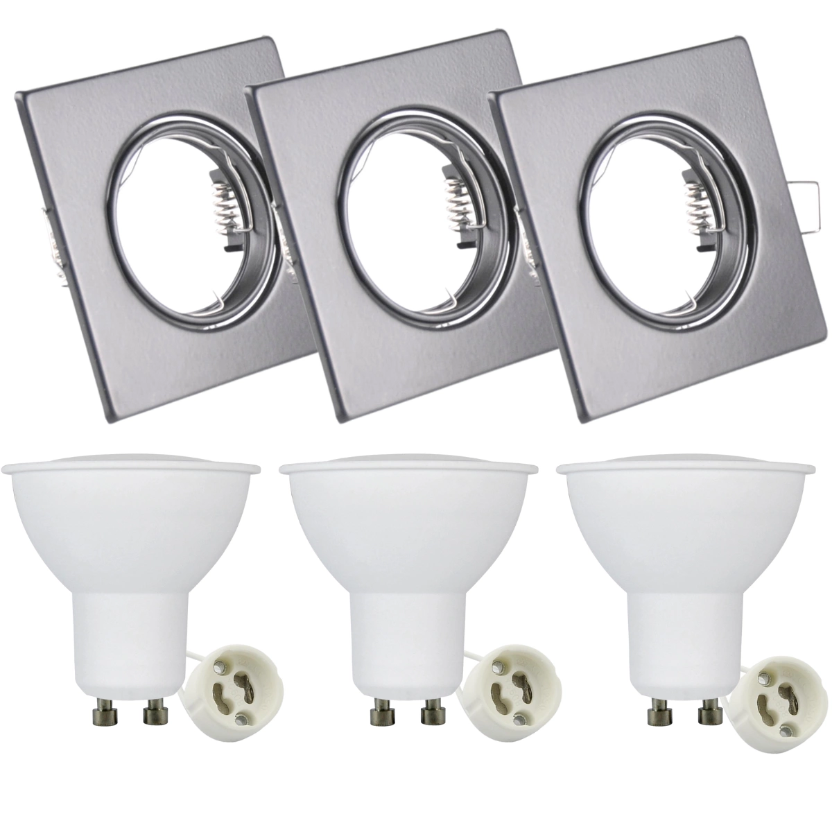 • Typ produktu: Halogenové zapuštěné, pohyblivé čtvercové svítidlo + LED žárovka GU10 + keramická objímka GU10