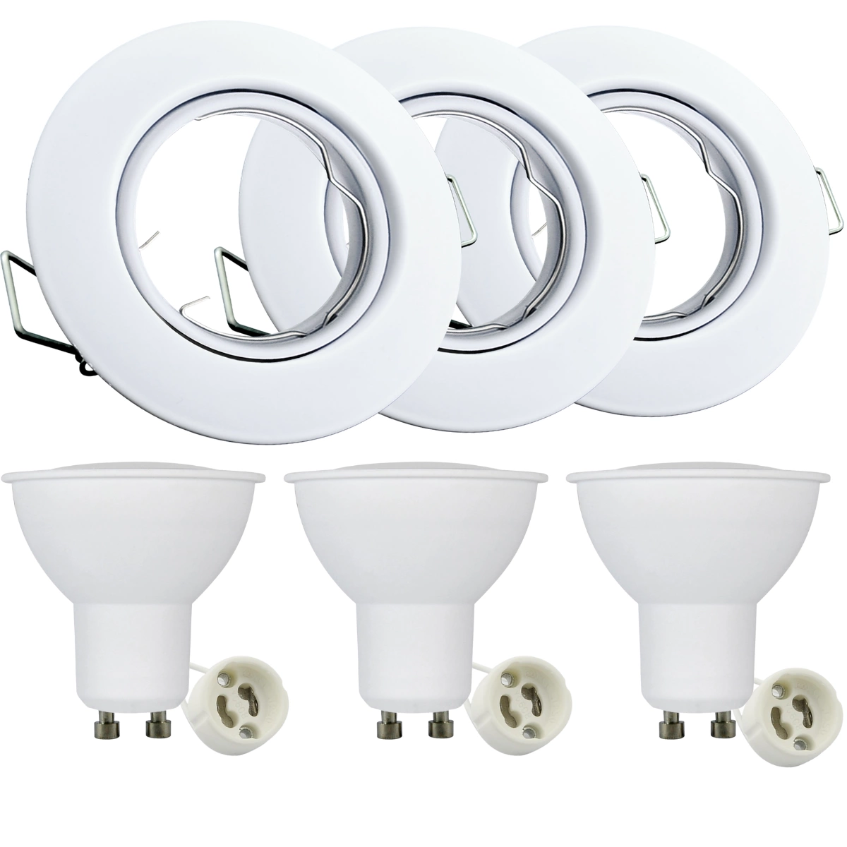 Sada 3x kulaté halogenové svítidlo + LED žárovka GU10 + keramická objímka GU10 je kompletní balení, které je připraveno k instalaci. Stropní svítidla jsou vyrobena z vysoce kvalitního kovu , díky čemuž jsou pevná a spolehlivá. Zde prezentovaná svítidla jsou bílá , která se snadno hodí k dekoraci většiny moderních bytů. Žárovky obsažené v sadě vydávají příjemné, bílé světlo o výkonu 3,5 W a světelném toku 250 lm .