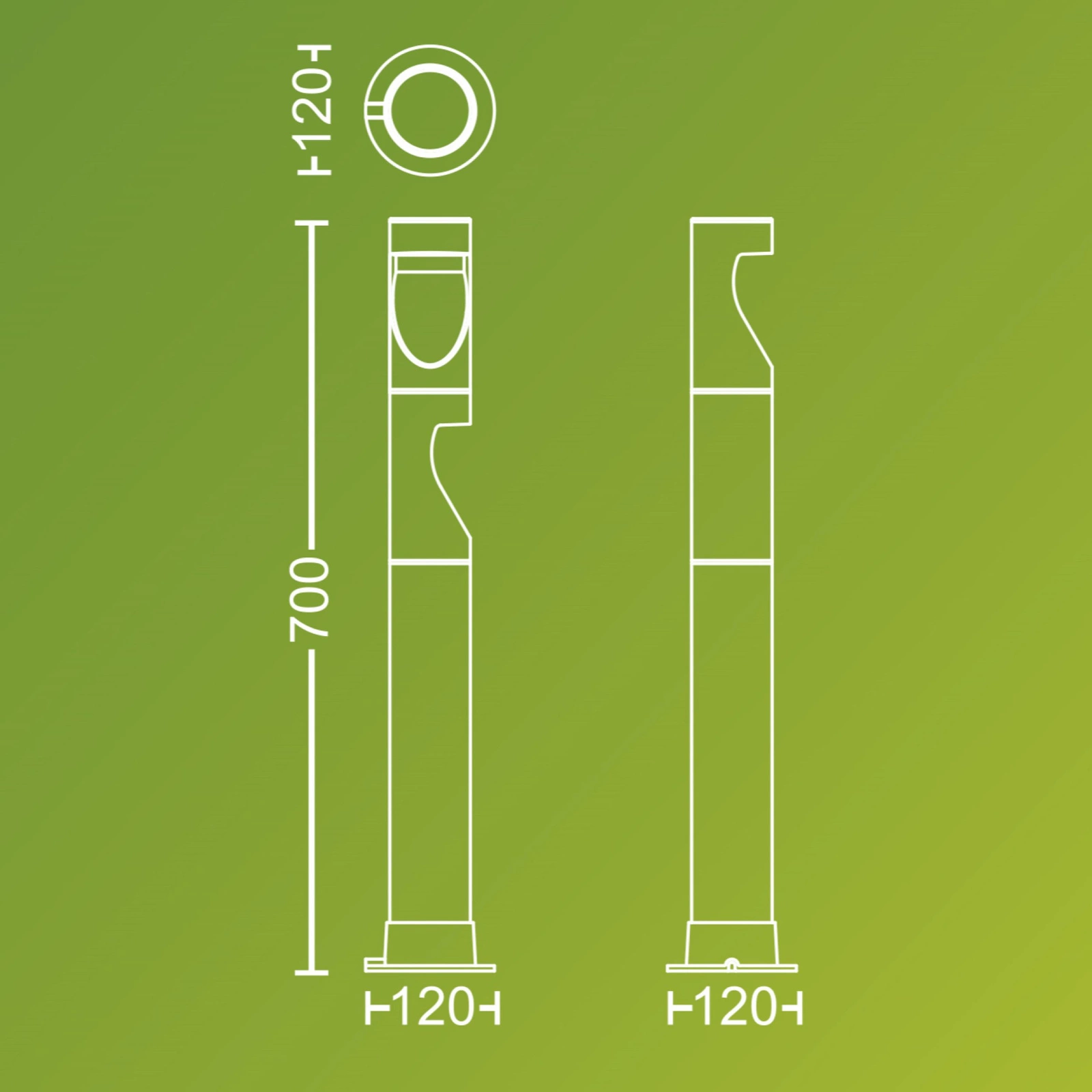 Představujeme vám naši moderní sadu tří venkovních zahradních svítidel typu sloupek, každé o výšce 70 cm. Jsou vybavena energeticky úspornými 1,5W LED diodami a vyzařují příjemné světlo s teplou barvou 2700K a světelným tokem 180 lumenů, které vytvoří dokonalou atmosféru na každé zahradě nebo terase.