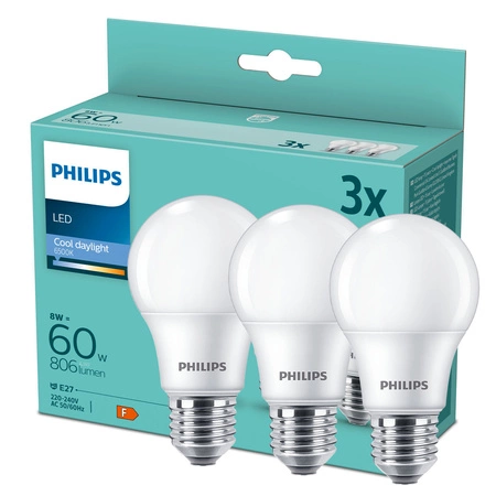 Sada obsahuje 3x E27 LED žárovky od PHILIPS .