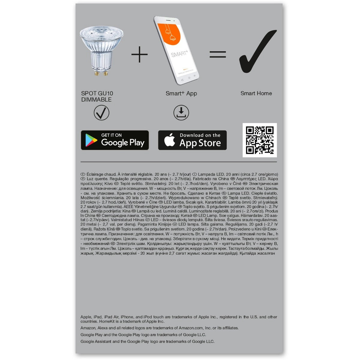 Představujeme moderní LED žárovku GU10 SMART+, která kombinuje pokročilou technologii s komfortním osvětlením. Nabízí světelný tok 350 lm při jmenovitém příkonu 4,9 W, což zajišťuje světelnou účinnost 72 lm/W. Díky teplé barvě světla 2700 K vytváří útulnou atmosféru, která je ideální pro obytné interiéry.