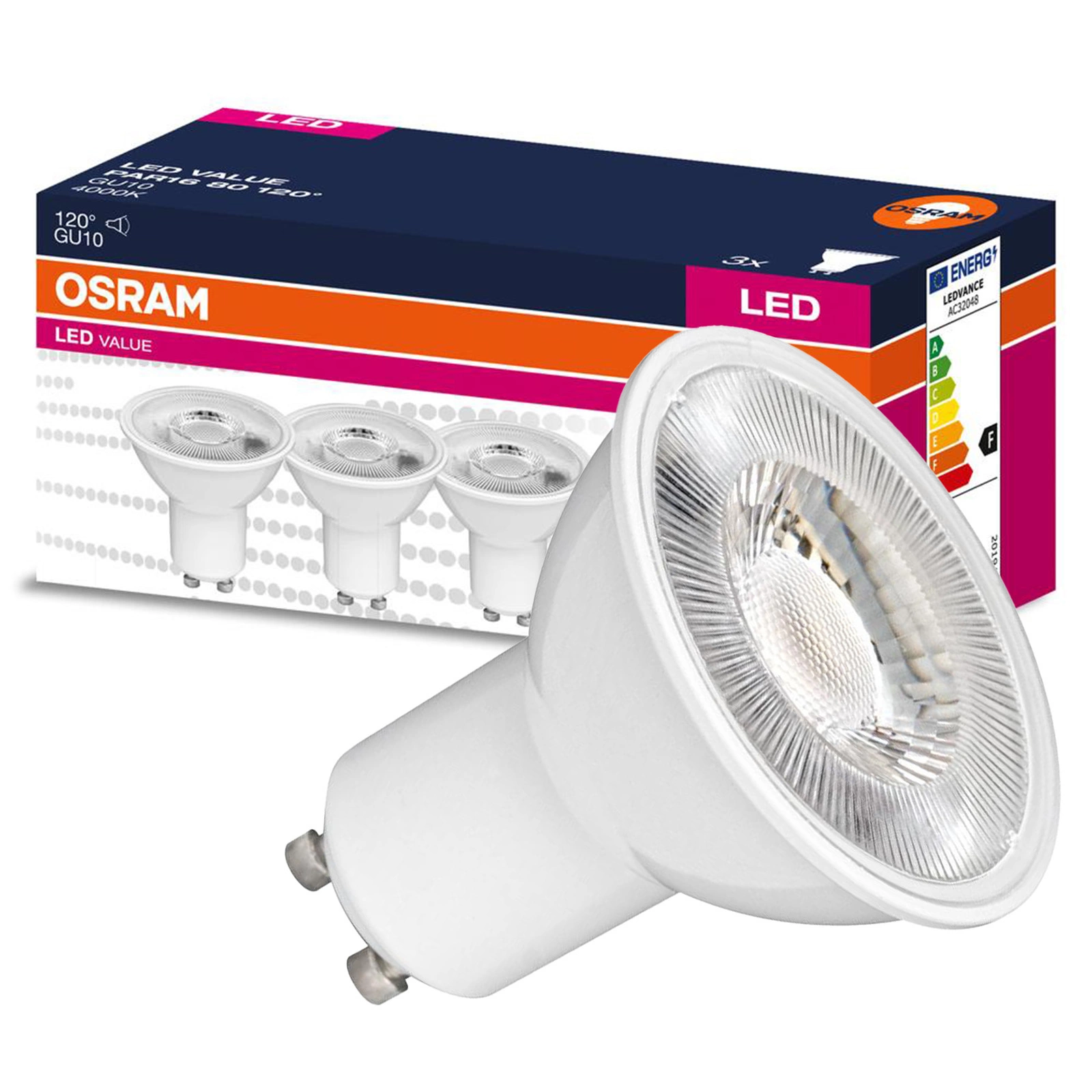 3PAK GU10 LED žárovka 6,9W = 50W 575lm 4000K Neutrální 120° OSRAM HODNOTA
