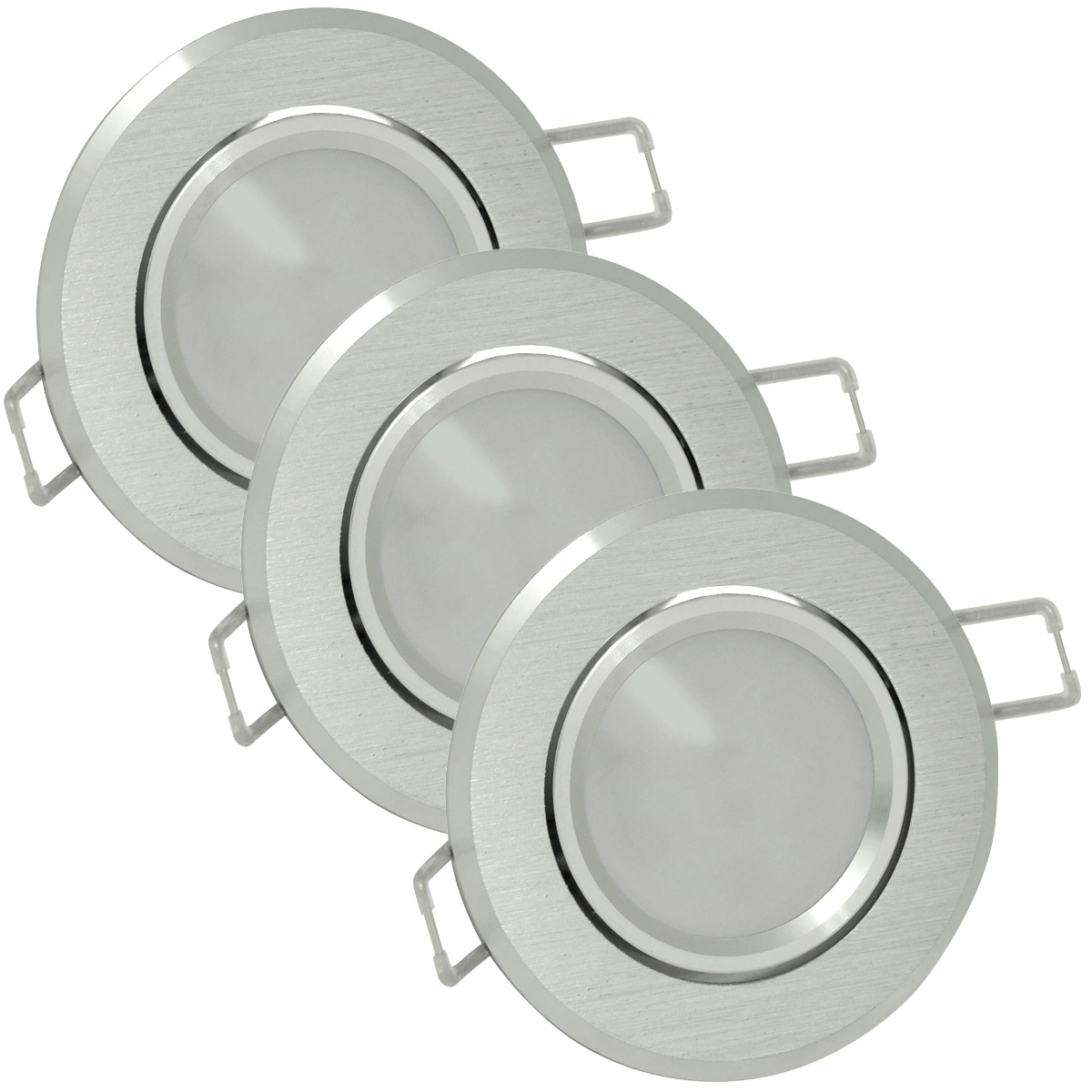 3x SUN OLAL vestavné stropní svítidlo, stříbrný broušený hliník GOLDLUX (Polux) + LED GU10 3,5W