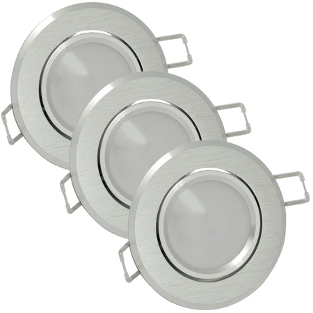 3x SUN OLAL vestavné stropní svítidlo. stříbrný broušený hliník GOLDLUX (Polux) + LED GU10 3.5W