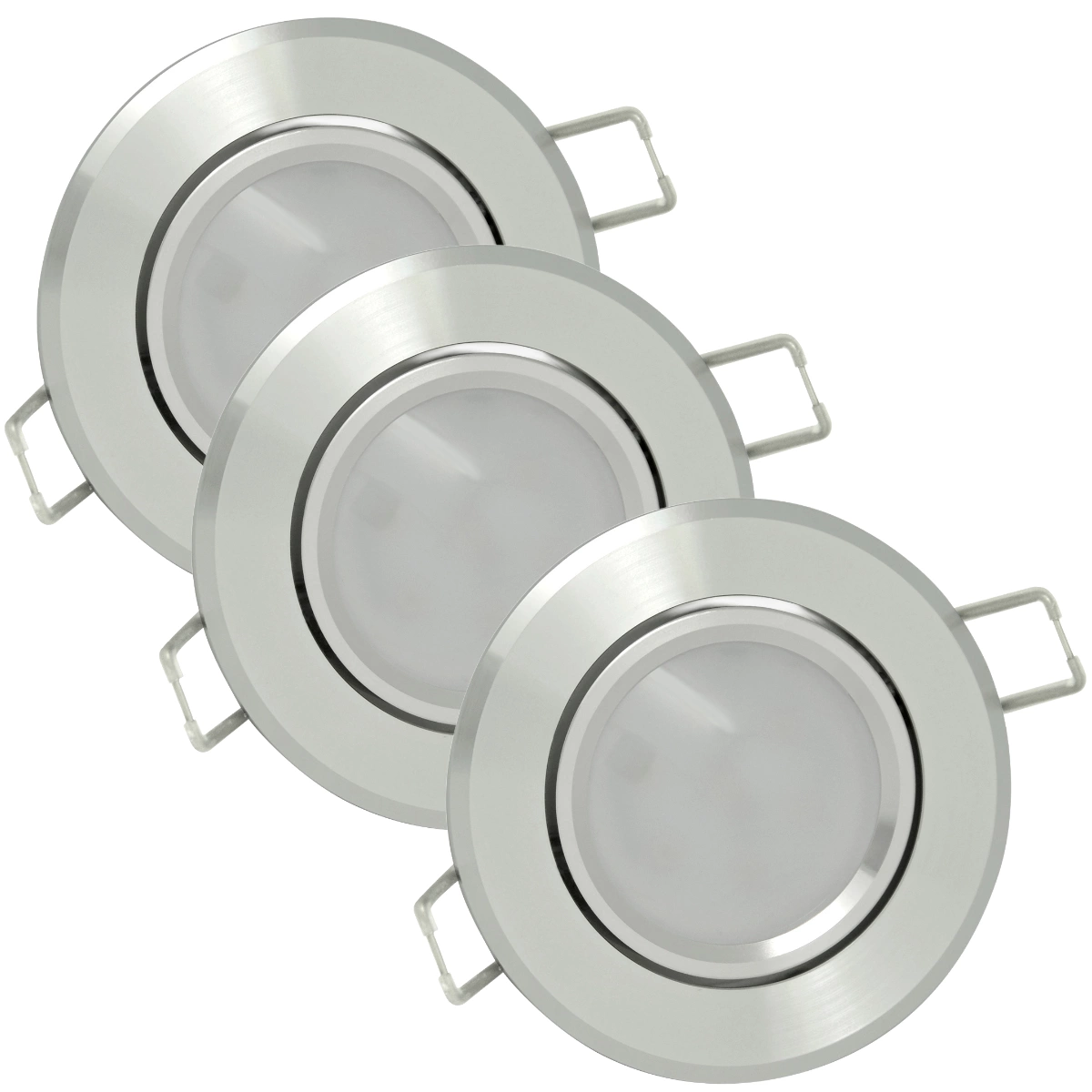3x SUN OLAL vestavné stropní svítidlo, stříbrný lesklý hliník GOLDLUX (Polux) + LED GU10 3,5W