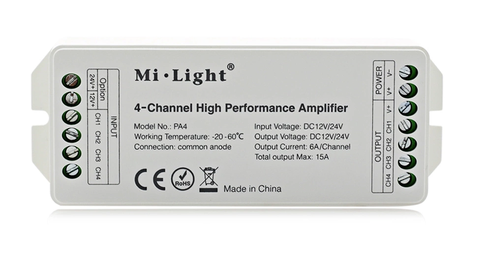 4kanálový zesilovač pro RGBW Mi-Light LED TAPES - PA4