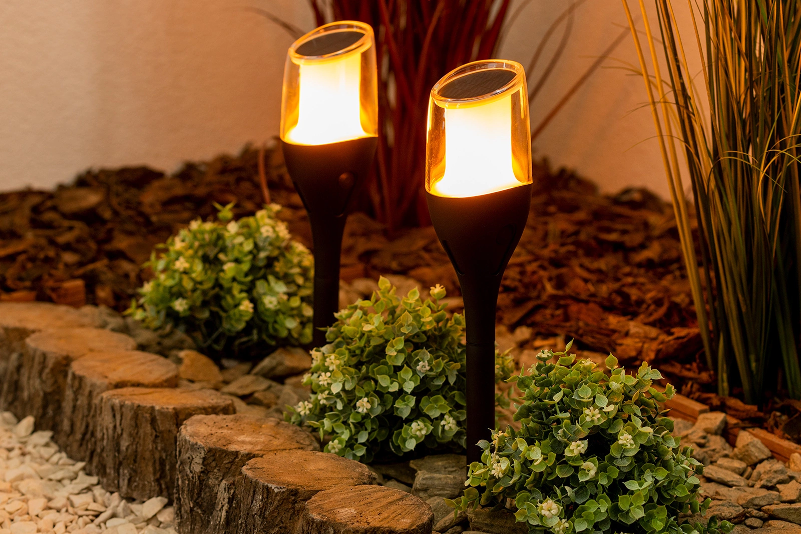 Sada 4x LED zahradní svítilny Solar Pole Flame Twilight Sensor