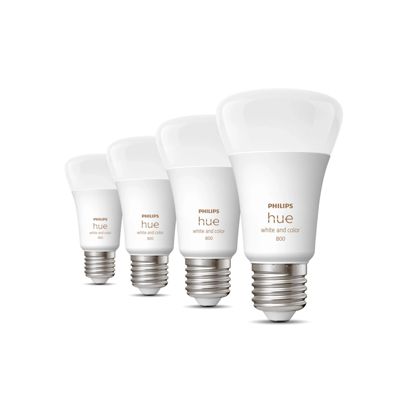 4x žárovka HUE LED uznávaný a respektovaný v oboru osvětlení Philips. Žárovka se závitem E27 a výkon 6W odpovídá klasické 60W žárovce. Výrobek s velmi účinným světelným tokem - 806lm, vyzařuje teplé příjemné a relaxační světlo, s 16 milionů barev i širokou paletu bílého světla, s nimiž můžeme vytvořit náladu vhodnou pro každou příležitost. Kromě kontroly světla v celé teplotní stupnici má žárovka také funkci okamžité stmívání.