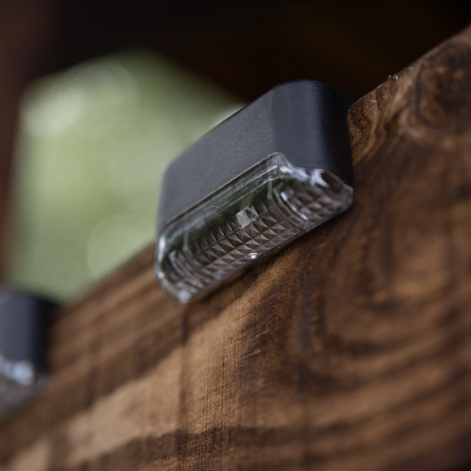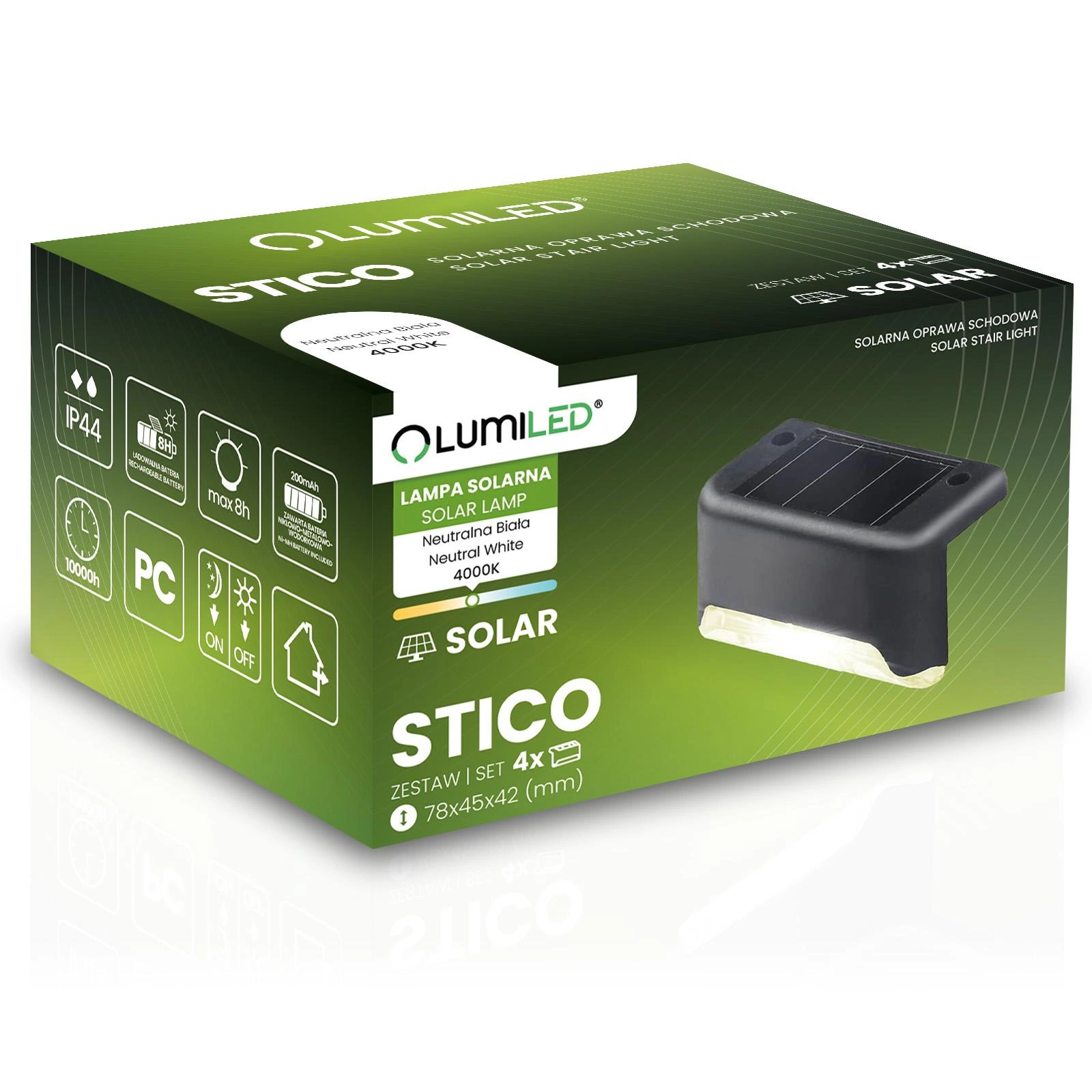 Sada 4 solárních lamp v černé barvě ze série STICO známá a renomovaná značka v oboru osvětlení LUMILED poskytuje moderní a ekologické řešení osvětlení vaší zahrady. Jejich robustní konstrukce zajišťuje odolnost, zatímco jedinečný design dodává prostoru, ve kterém bude umístěn, eleganci. Je nejen praktickým zdrojem světla, ale také zdrojem stylovým a originálním dekorativním doplňkem, zvýraznění krásy každé zahrady. Kompaktní rozměry světla umožňují jeho snadnou montáž na různé povrchy schodišť nebo zábradlí.
