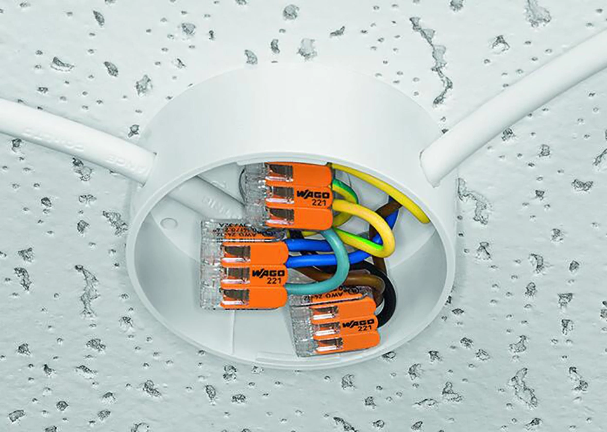 Instalační konektor řady 221 od renomované firmy WAGO , oceňovaný instalatéry . Konektory WAGO umožňují rychlé, bezproblémové a hlavně spolehlivé připojení kabelů.