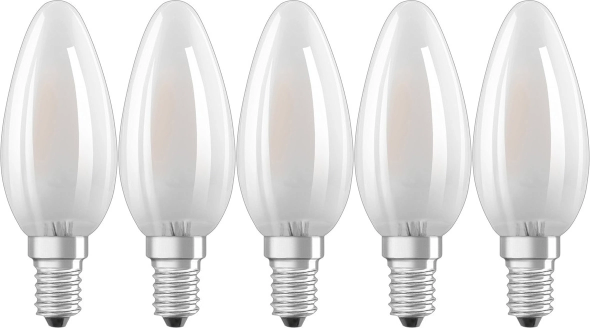 Sada 5x OSRAM mléčné LED žárovky , moderní a energeticky úsporný světelný zdroj o výkonu 4W ( odpovídá 40W) s malou paticí (závitem) E14 , díky čemuž je  výměna žárovky velmi snadná. Žárovka ve tvaru svíčky s opálovým stínidlem vyzařuje teplou barvu světla 2700K a její světelný tok je 470lm . Profesionální zpracování a použití nejnovějších řešení LED technologie poskytuje žárovkám OSRAM velmi vysokou účinnost a věrnou reprodukci barev. Největší výhodou LED žárovek je snížená spotřeba energie, která může být až o 90 % nižší než u tradičních světelných zdrojů. Rozhodnutím o koupi prezentované žárovky OSRAM získáváme výrobek nejvyšší kvality, který nám díky pečlivému zpracování a použití těch nejlepších materiálů zajistí provoz na velmi dlouhou dobu.