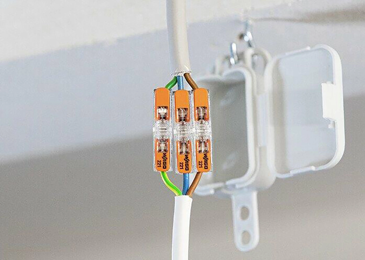 Instalační konektor řady 221 od renomované firmy WAGO , oceňovaný instalatéry . Konektory WAGO umožňují rychlé, bezproblémové a hlavně spolehlivé připojení kabelů.