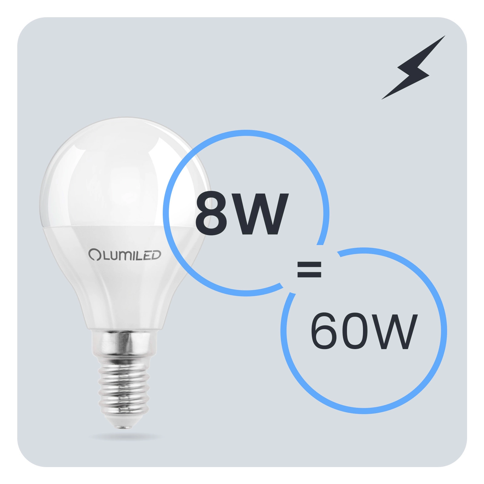 6x LED žárovka E14 Ball P45 8W = 60W 880lm 3000K Warm 180° LUMILED