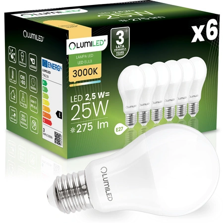 - Pouze 2,5 W energie - poskytuje jas na úrovni klasického 25W a spotřebovává málo energie, což zaručuje každodenní úsporu.