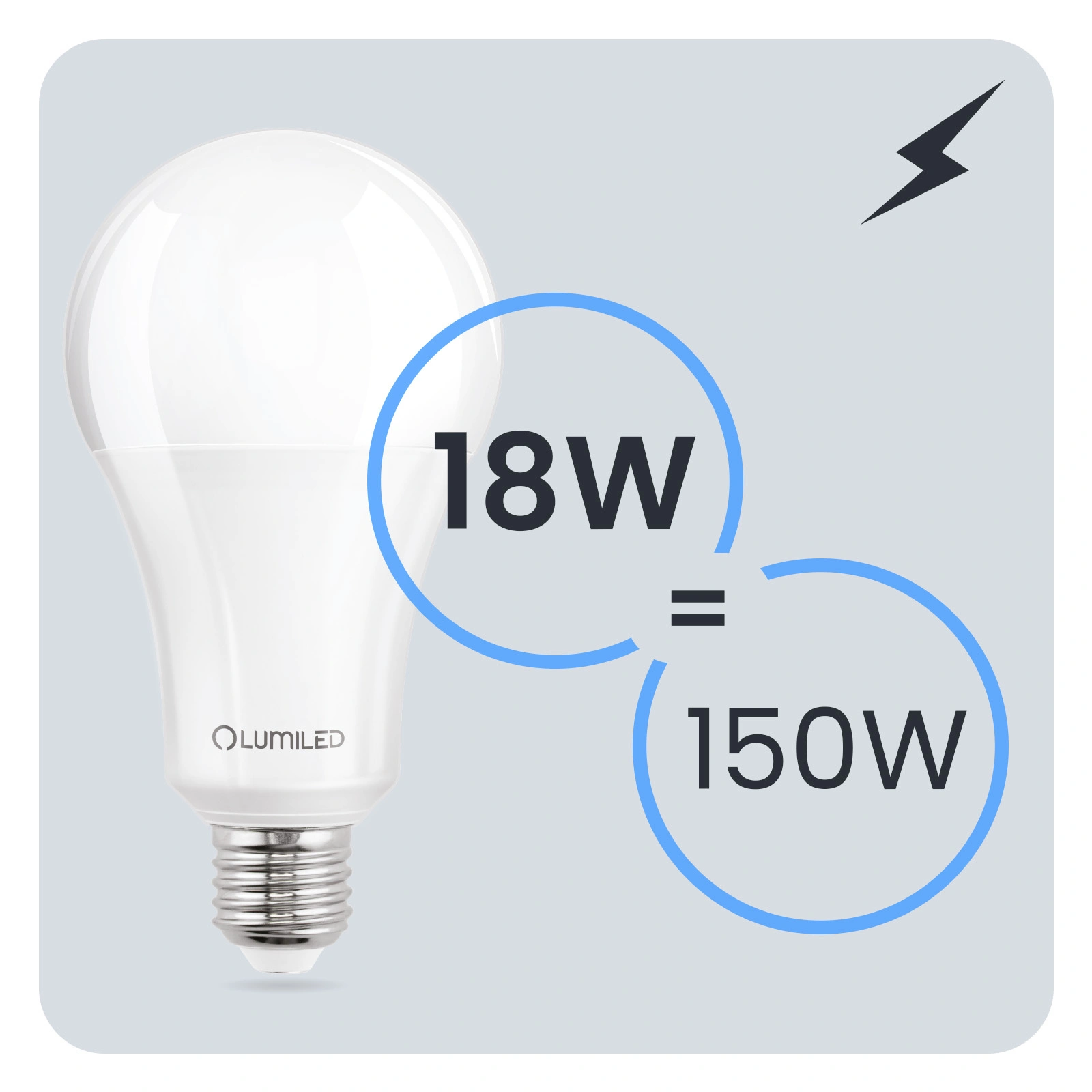 • Efektivní 18W příkon - generuje světlo srovnatelné s tradičním 150W, spotřebovává výrazně méně energie a pomáhá snižovat každodenní náklady.