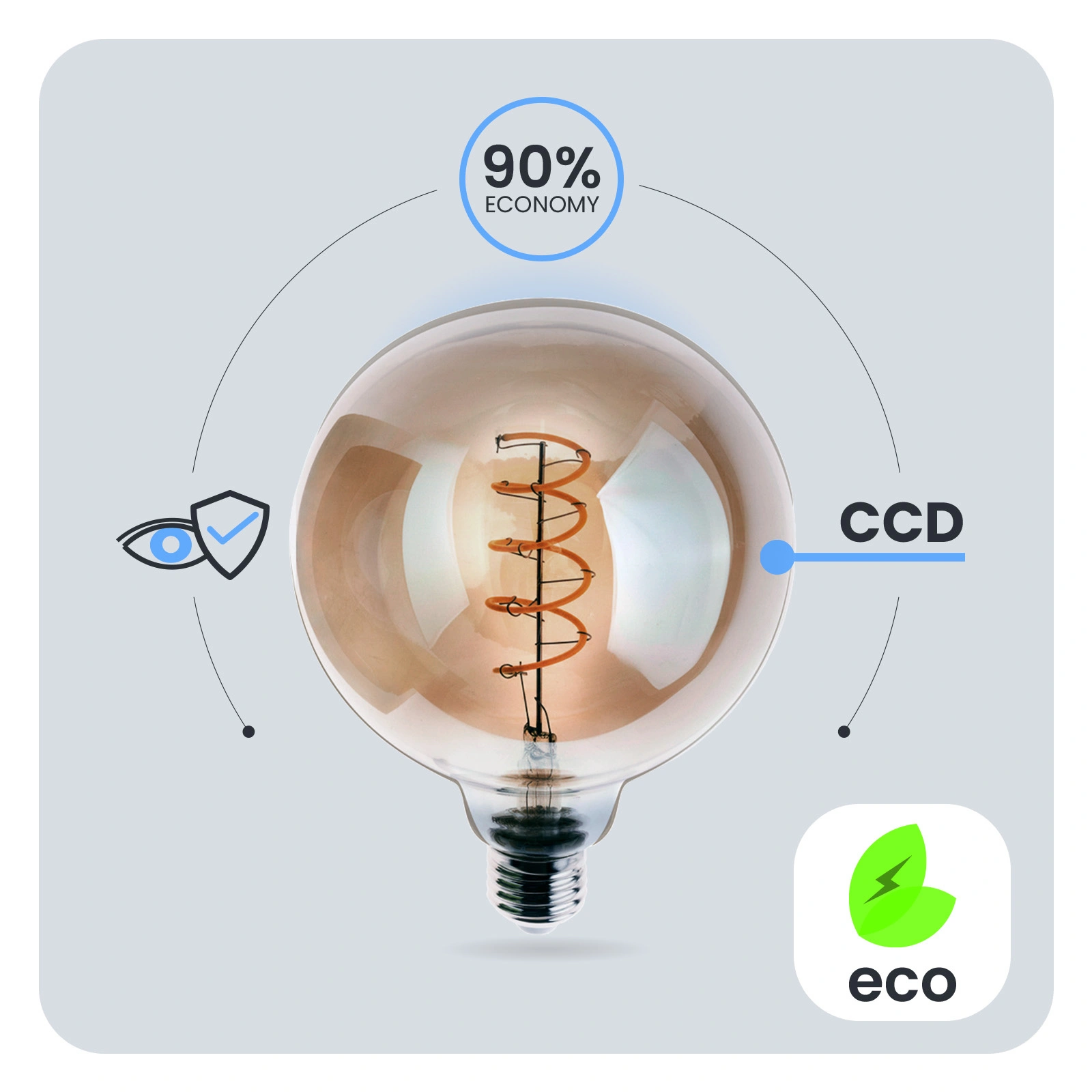 Díky měniči CCD použitému v žárovce LED je žárovka odolná vůči poklesům a špičkám síťového napětí. Světlo nebliká ani se netřese. Díky měniči CCD je žárovka dlouhodobě bezporuchová. Žárovky LUMILED jsou navrženy s ohledem na uživatele. Špatná kvalita osvětlení může vést k únavě očí, proto mají naše žárovky technický vývoj Eye Safe, který zajišťuje pohodlné a šetrné osvětlení pro vaše oči v jakékoli místnosti.