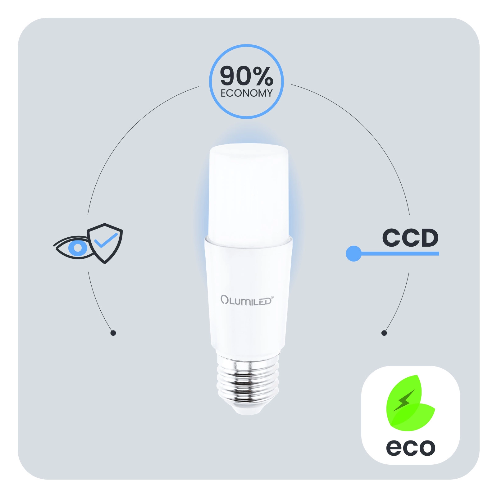 Díky měniči CCD použitému v žárovce LED je žárovka odolná vůči poklesům a špičkám síťového napětí. Světlo nebliká ani se netřese. Díky měniči CCD je žárovka dlouhodobě bezporuchová. Žárovky LUMILED jsou navrženy s ohledem na uživatele. Špatná kvalita osvětlení může vést k únavě očí, proto mají naše žárovky technický vývoj Eye Safe, který zajišťuje pohodlné a šetrné osvětlení pro vaše oči v jakékoli místnosti.