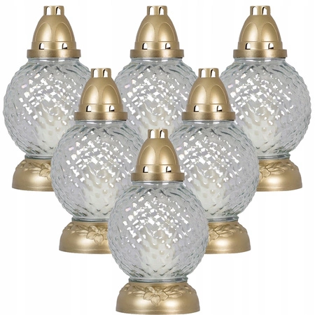 6x Skleněná svíčka s vložkou 28h Celoročně na hrob 24.5cm