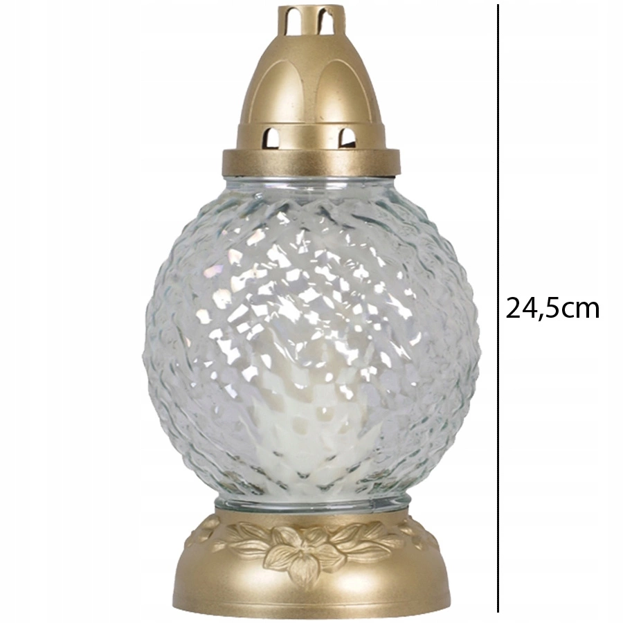 Klasická skleněná svíčka s parafínovou vložkou s dobou hoření 28 hodin (v závislosti na povětrnostních podmínkách). Výrobek je nejvyšší kvality, splňuje bezpečnostní normy a při hoření nekouří. Svíčky se skvěle hodí jako dekorativní prvek na náhrobcích a jako symbol památky na svátek Všech svatých .