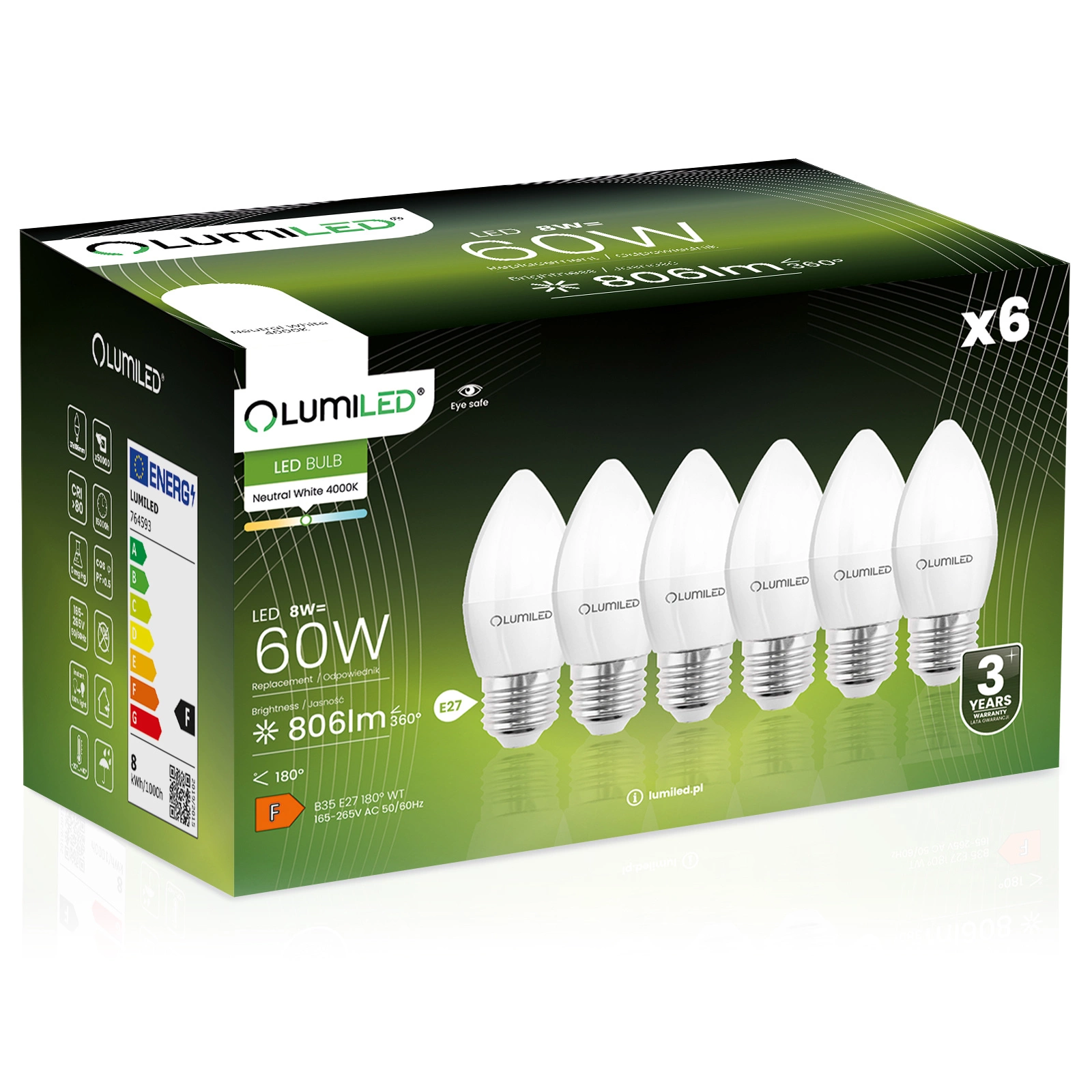 Úsporná LED žárovka B35 8W je osvědčenou a nejlepší volbou pro univerzální aplikace. Vhodné pro instalaci do všech standardních modelů stropních svítidel se šroubovací paticí E27.