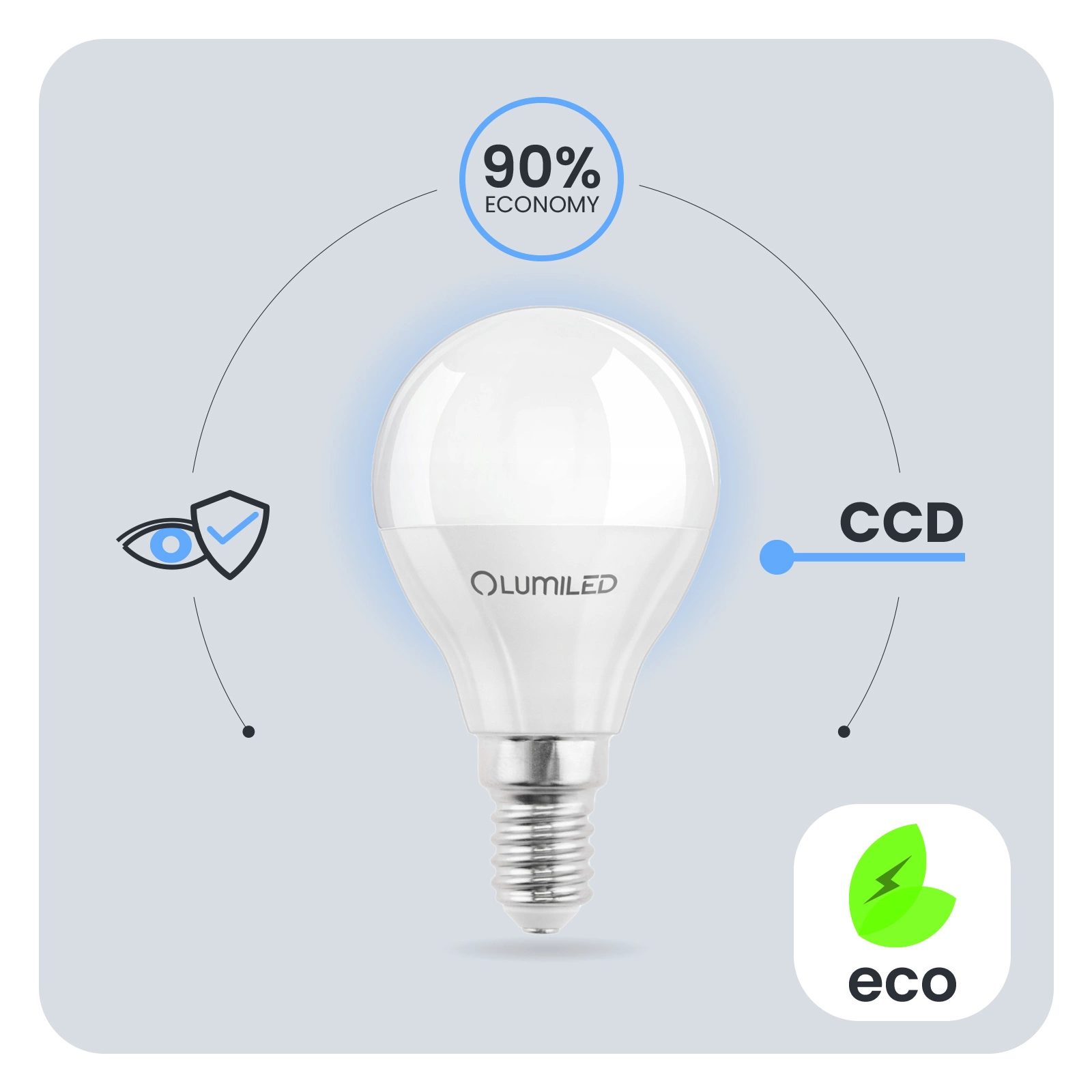 Hlavní výhodou LED žárovek je až o 90 % nižší spotřeba elektrické energie ve srovnání se standardními světelnými zdroji, navíc LED žárovky neobsahují vlákna a další křehké součásti, což z nich dělá odolnost vůči vibracím a mechanickému poškození. Představená LED žárovka ve tvaru malé koule s mléčným difuzorem vyzařuje teplé světlo, příjemné a relaxační světlo s barevnou teplotou 3000 K, který je ideální pro celkové osvětlení místností.