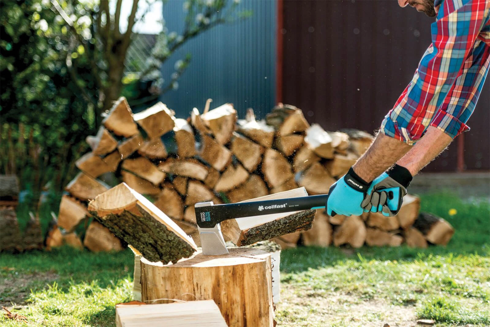 Štípací sekera z CELLFAST je velmi robustní nástroj, který splňuje požadavky zemědělců, zahradníků, stavebních a lesních dělníků. Značka CELLFAST je celosvětově oceňován za kvalitu, trvanlivost a přesnost představení. Sekera štípací sekera se vyznačuje tím, že klínovitou hlavou a znatelný posun těžiště směrem dopředu, což zaručuje ideální rovnováhu a tím usnadňuje přesné dělení dřevo o průměru větším než 25 cm. Čepel je vyrobena z vysoce kvalitního z indukčně kalené oceli, extrémně odolné, pevně spojena s rukojetí, aby byla zaručena přesné řezání a dlouhou životnost. Pro maximální pohodlí byla rukojeť profilovaná a z kompozitních materiálů vyztužený skelná vlákna, která poskytují tlumení při nárazu. Technologie SAFETOUCH pokrývá převážnou část rukojeti bezpečný úchop a chrání vaše ruce při práci, ale také chrání před nadměrným zahříváním na slunci. Přiložená multifunkční kryt hlavy poskytuje zabezpečení přenášení a skladování nářadí. Sekera byla certifikát osvědčující jeho zpracování a bezpečnost TÜV GS Celková délka sekery je 74 cm a hmotnost 2 kg výrobek byl plně navržen a vyroben v Polsku