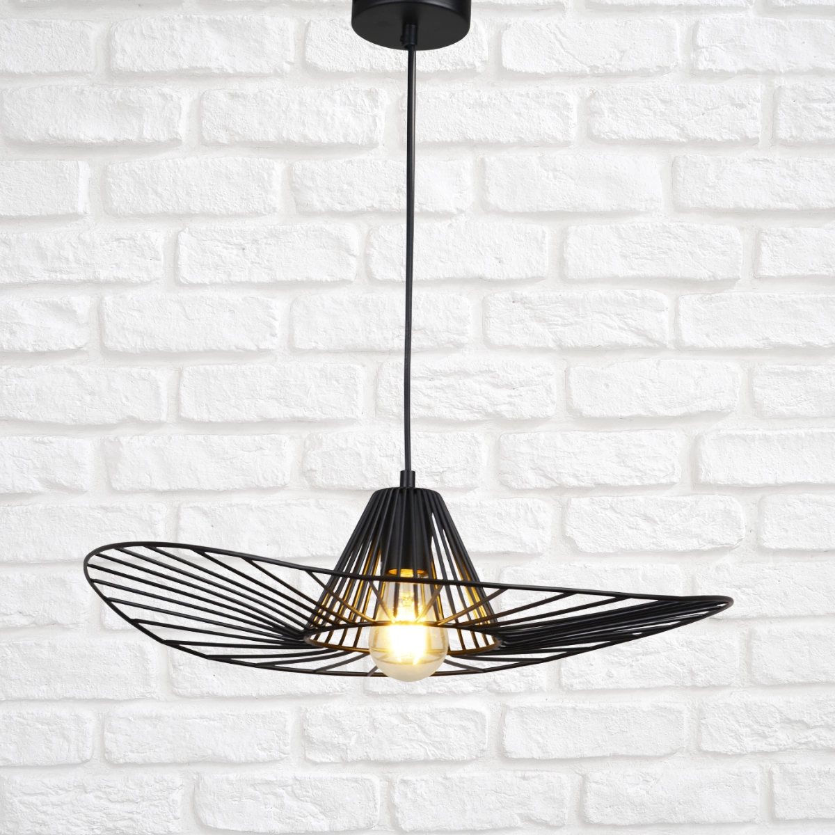 Závěsné svítidlo ABANO ve tvaru klobouku bylo vytvořeno pro interiéry dokončené v moderním stylu, používá se především jako hlavní osvětlení obývacích pokojů, ložnic a obývacích pokojů. Mimořádně originální a stylové závěsné svítidlo ABANO v černé barvě je hitem osvětlení do módních půdních a průmyslových prostor. Stínidlo je mírně zakřivené, i když má plochou strukturu připomínající klobouk. Stínidlo je vybaveno objímkou s oblíbenou paticí E27 , která umožňuje v tomto lustru použít klasickou žárovku nebo LED žárovku . Délka převisu je nastavitelná , maximální délka svítidla se stínidlem je 1,2 m.