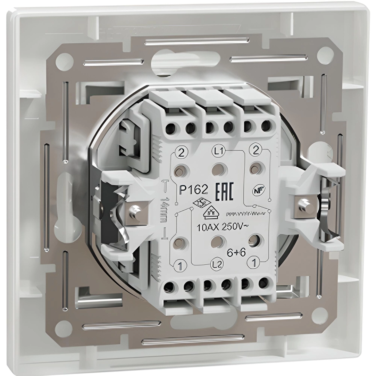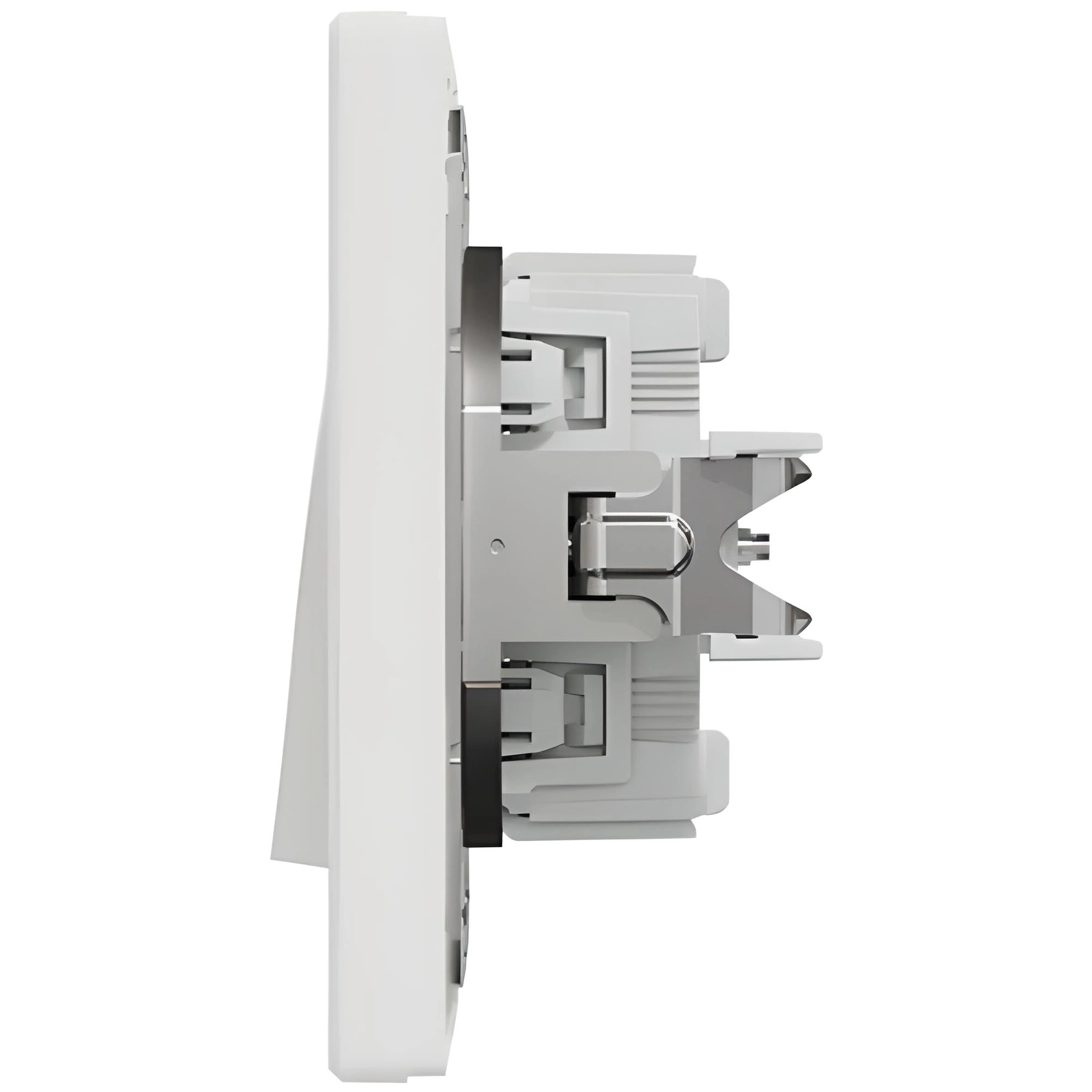 Schodišťový vypínač Schneider Electric v bílé barvě z řady Asfora může fungovat jako klasický vypínač světel nebo poslouží k zapínání jiných zařízení s maximálním odběrem proudu až 10AX. Pevné a dlouhé drápy jsou podepřeny kovovými vodítky ve svislé poloze, což usnadňuje a zajišťuje instalaci . Montážní rám z pozinkovaného kovu má speciální zářezy, které usnadňují připojení.