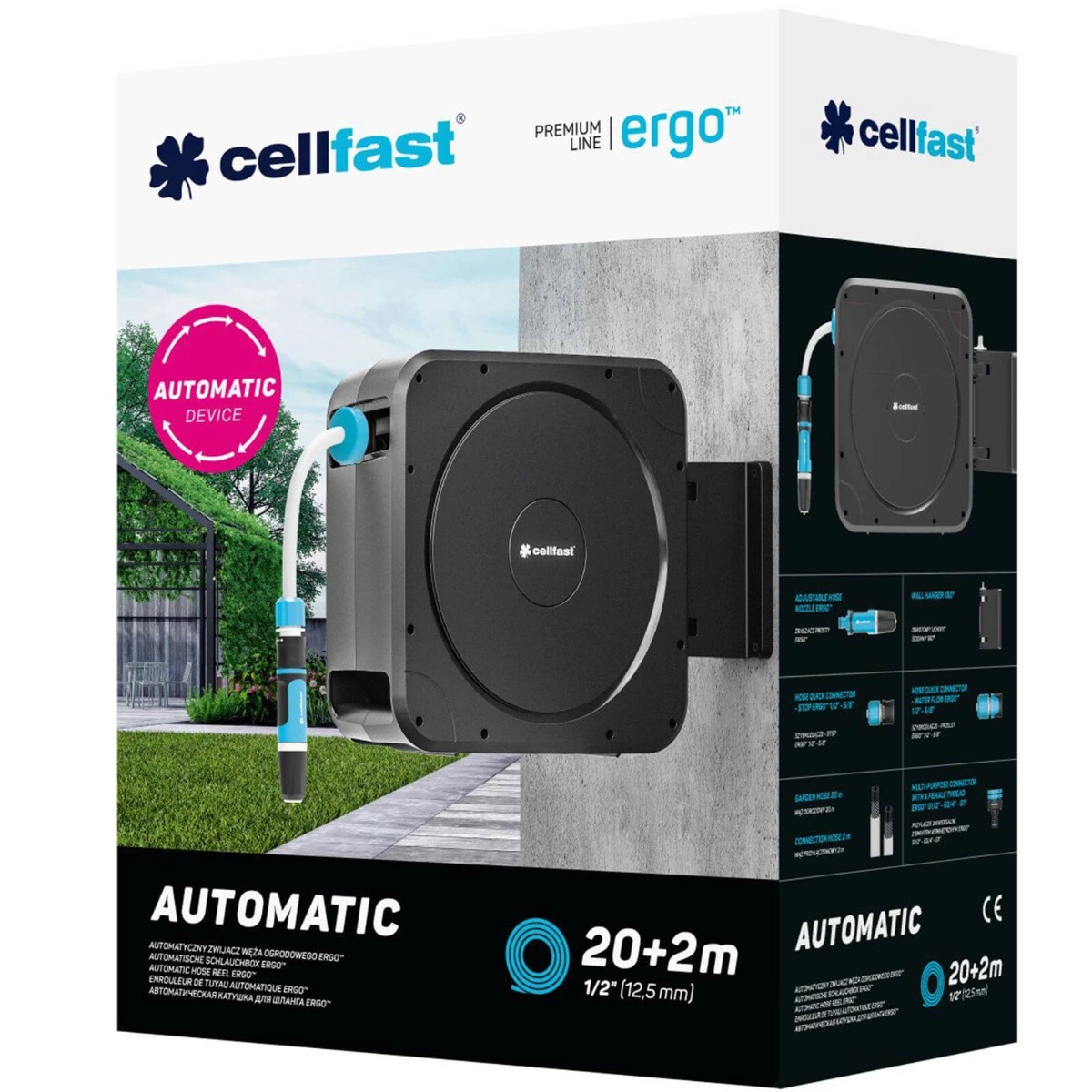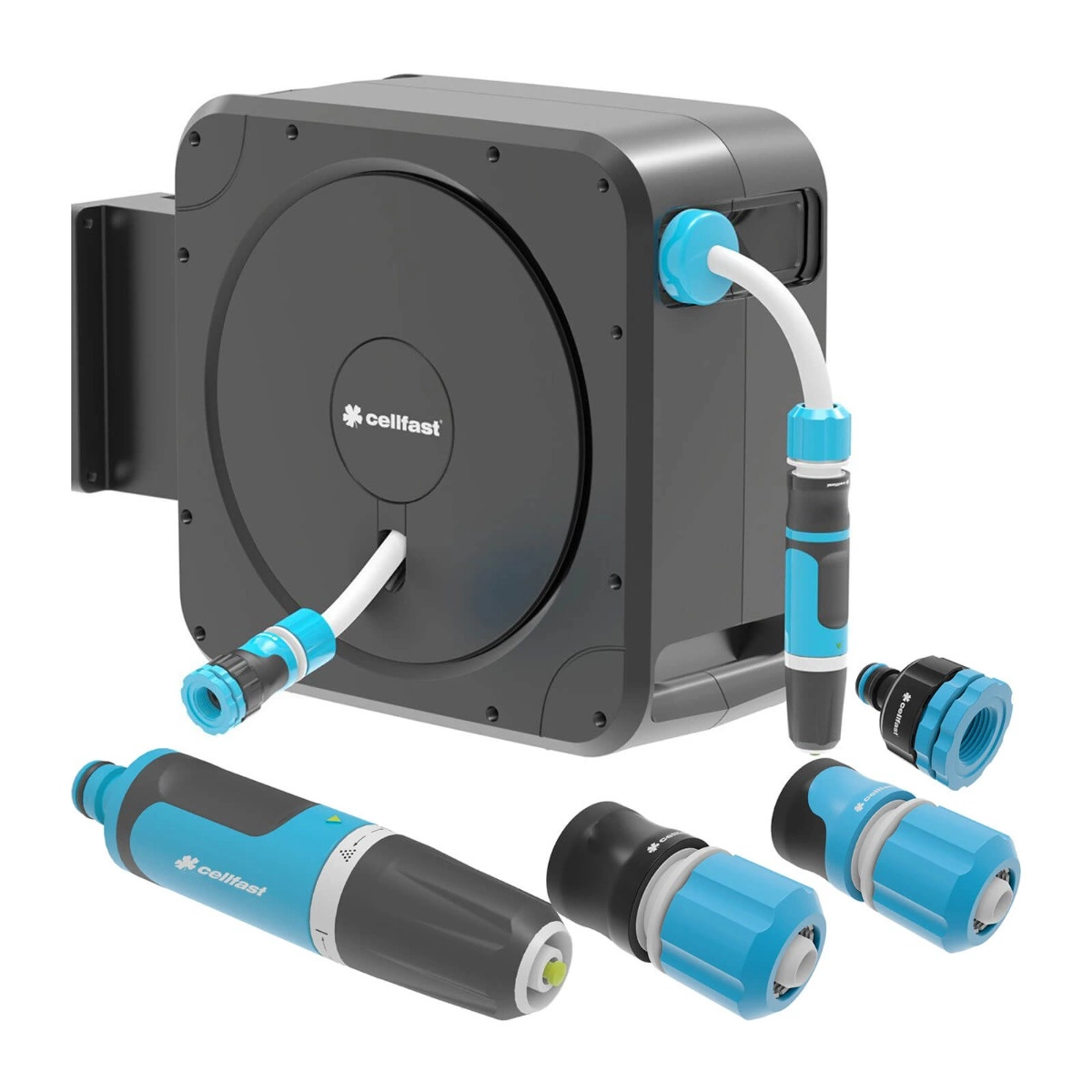 Automatický naviják na zahradní hadici s 20m koncovkami + zavlažovací sada ERGO CELLFAST