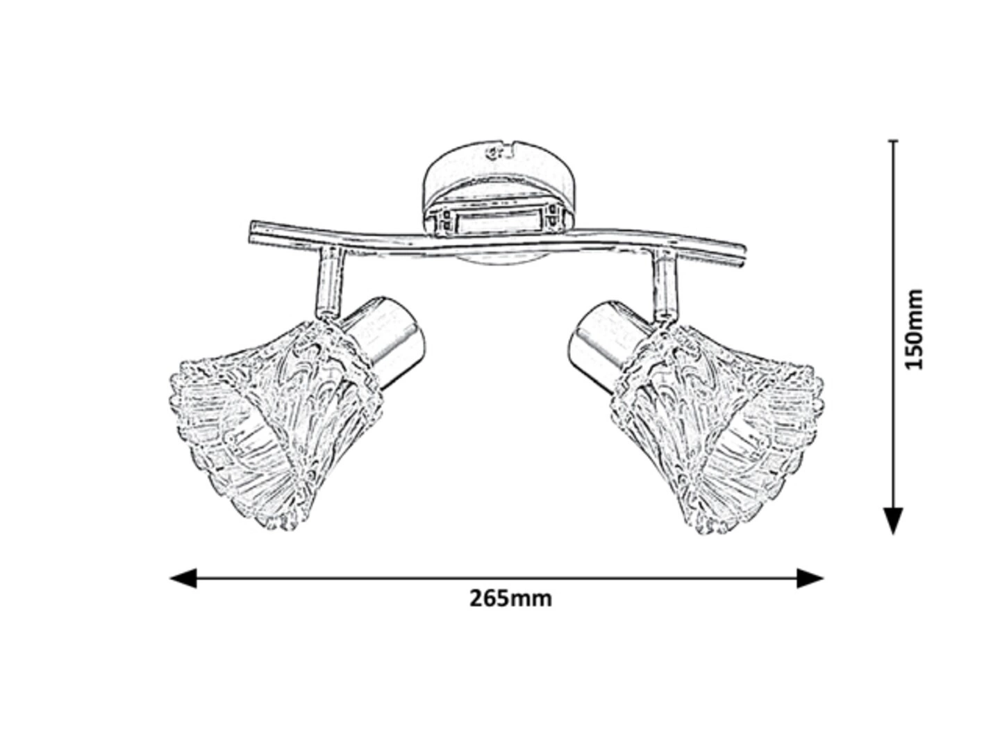 Tento model nabízí dva světelné body s maximálním výkonem 10 W na žárovku, která je snadno vyměnitelná díky patici E14. Napájení ze sítě je přizpůsobeno napětí 230 V a zajišťuje nepřetržitý provoz při frekvenci 50 Hz. Má certifikát CE a záruku 2 roky. Stupeň krytí IP20 doporučuje použití v interiéru, což zajišťuje bezpečnost a pohodlí. Žárovky nejsou součástí dodávky.