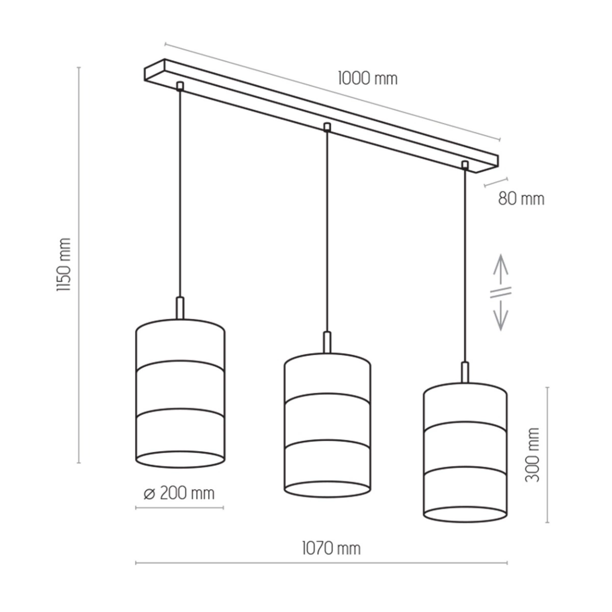 Existují také dva typy závěsných svítidel - s jedním stínidlem a se třemi stínidly zavěšenými na jedné liště. Stínidla mají průměr 20 cm a jsou ve tvaru trubice.
