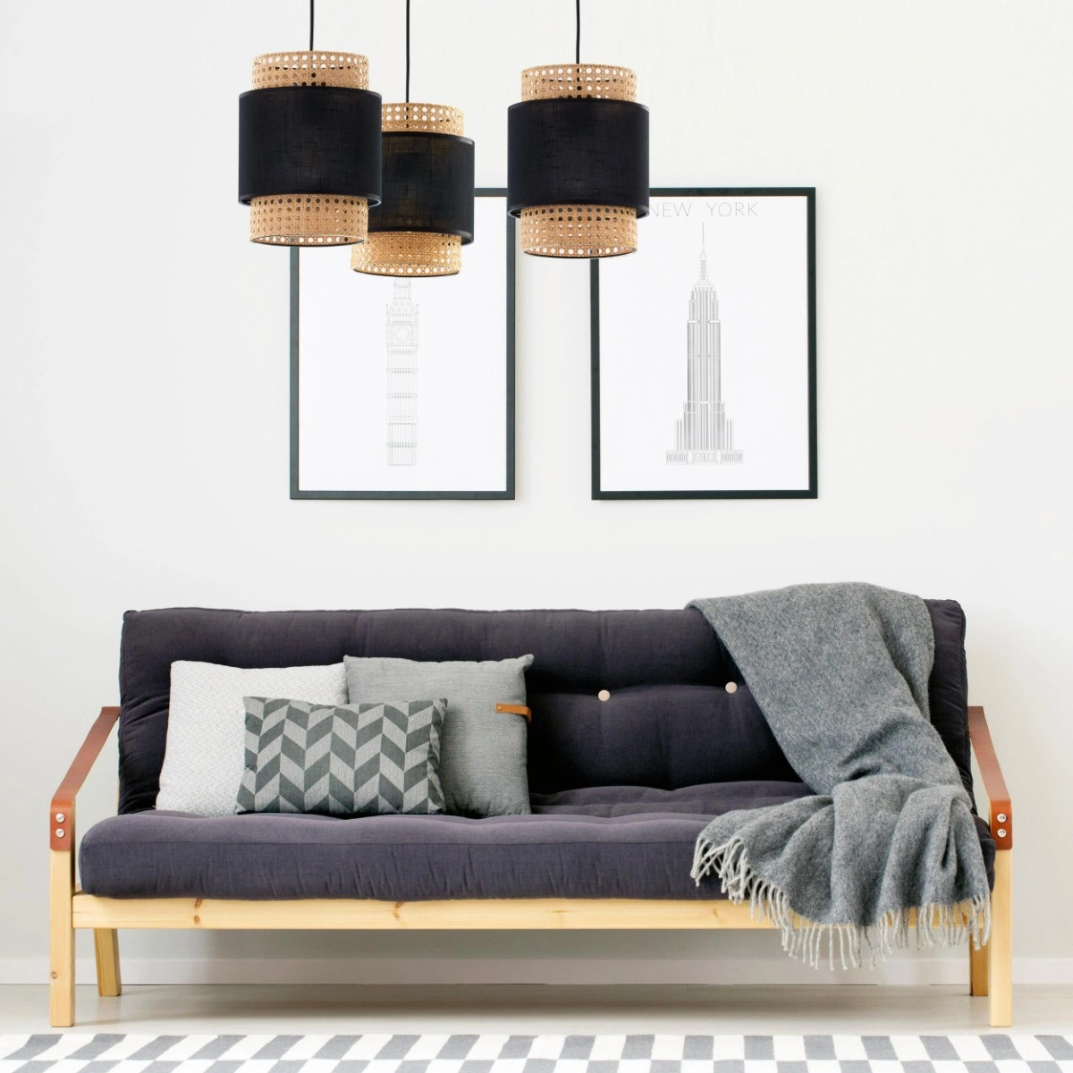 Lampa Sufitowa Wisząca BOHO BLACK Rattanowa Czarna Styl Boho 3xE27 6549 TK Lighting