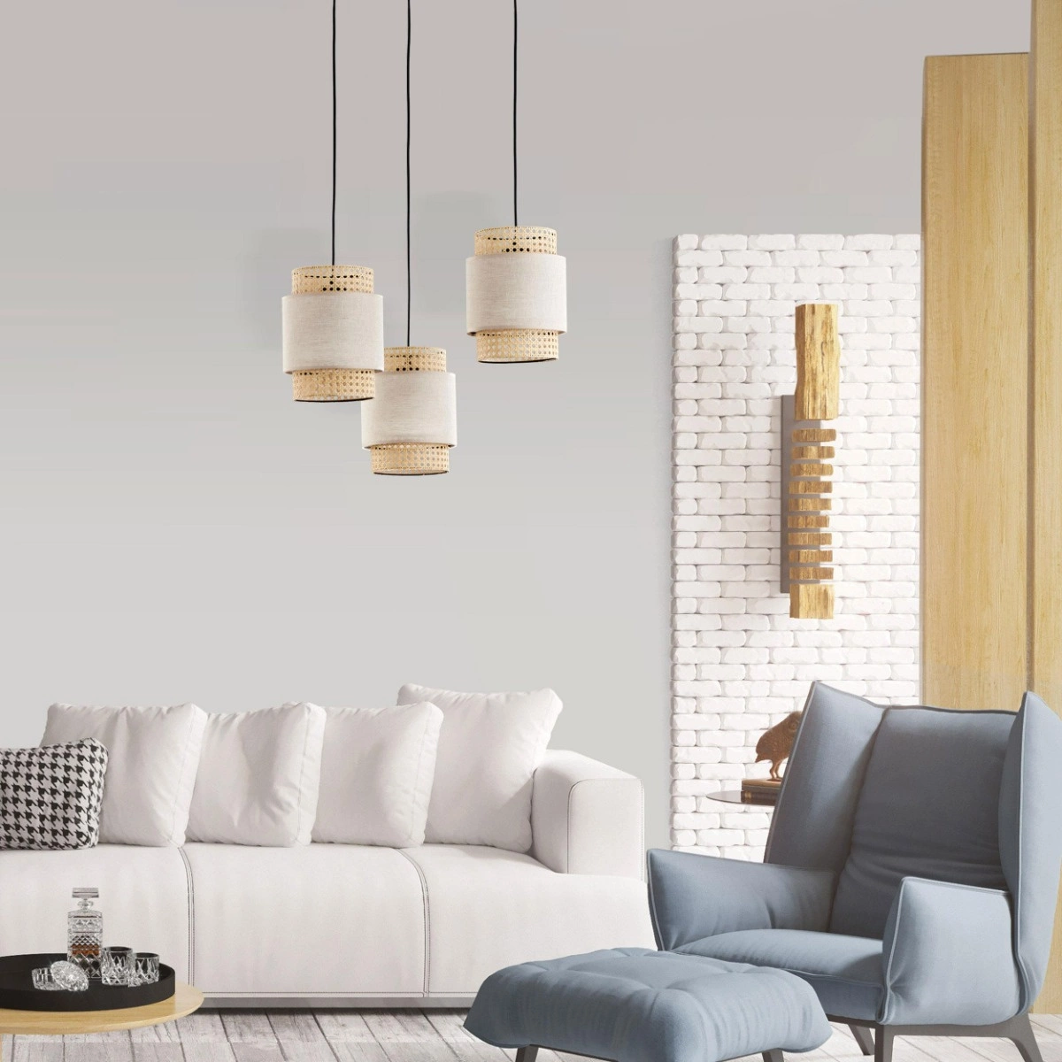 Lampa Sufitowa Wisząca BOHO NATURE Rattanowa Czarno-Beżowa Styl Boho 3xE27 6303 TK Lighting