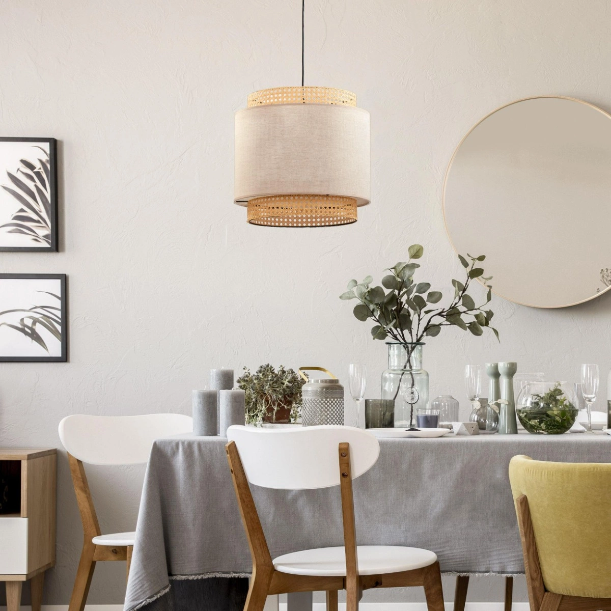 Lampa Sufitowa Wisząca BOHO NATURE Zwis Rattanowa Czarno-Beżowa Styl Boho E27 6301 TK Lighting