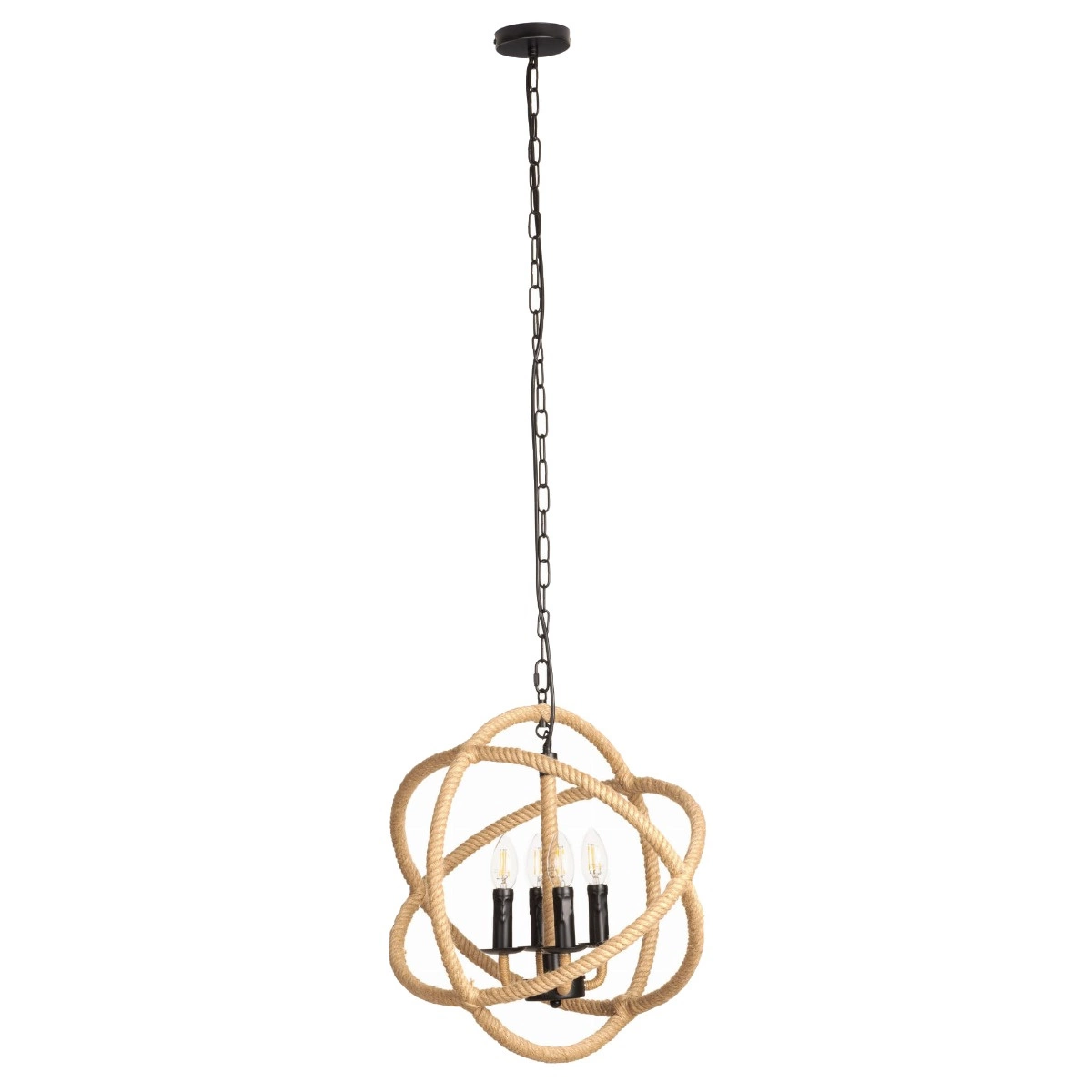 Závěsná lampa Boho eko styl se vztahuje k přírodě. Jeho otevřená forma tvořená dvěma propletenými kruhy usnadňuje průnik světla a vyplňuje interiér. Jutová šňůra v kombinaci s černými detaily se bude krásně vyjímat v místnostech, kde převládá šedá barva, keramika a dřevo. Kovové stínidlo poskytuje stabilní formu pro jutový cop, který je originální, ale jednoduchou kompozicí. Celek doplňuje kabel zavěšený na černém řetízku, který lampě dodává lehce syrovou a loftovou atmosféru Lampa ve stylu BOHO se čtyřmi svítícími body, zavěšené ve středové poloze, budou poutavou dekorací. Hodí se také do komerčních prostor, jako je bar nebo atmosférická restaurace, a je vynikajícím doplňkem moderních nebo minimalistických interiérů, kterým dodá šarm a jinou tvář.
