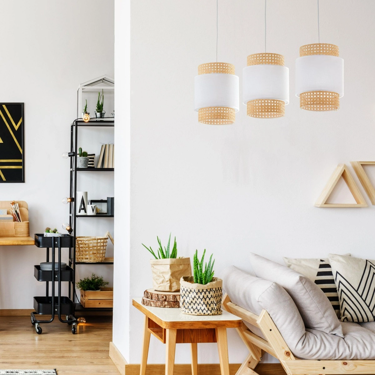 Lampa Sufitowa Wisząca BOHO WHITE Listwa Rattanowa Biała Styl Boho 3xE27 6531 TK Lighting