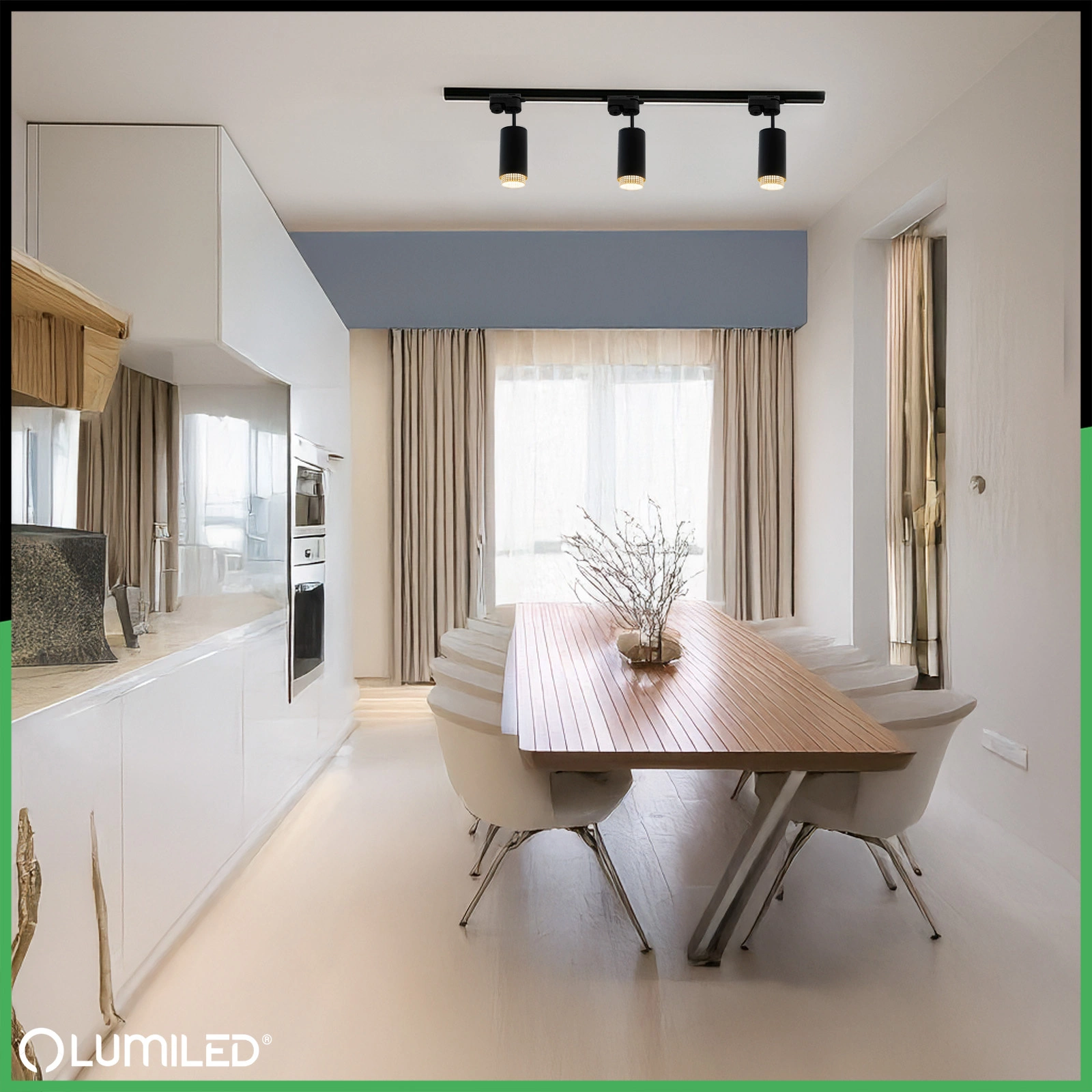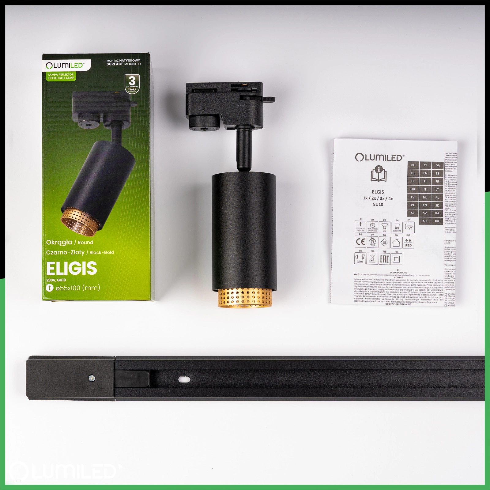 Dodejte svému interiéru exkluzivní šmrnc s černo-zlatým kolejnicovým osvětlením Lumiled. Nastavitelná bodová svítidla ELIGIS z odolného hliníku poskytují přesné směrové světlo, ideální pro pracovní zóny, pracovní desky nebo vystavování dekorací. Díky jednofázové liště je instalace rychlá a možnost přemisťovat svítidla vám dává naprostou svobodu při navrhování - svítit můžete, kamkoli chcete. Patice GU10 podporují LED žárovky do 12 W, takže získáte jasné osvětlení s nízkou spotřebou energie. Rozhodněte se pro styl, který funguje.