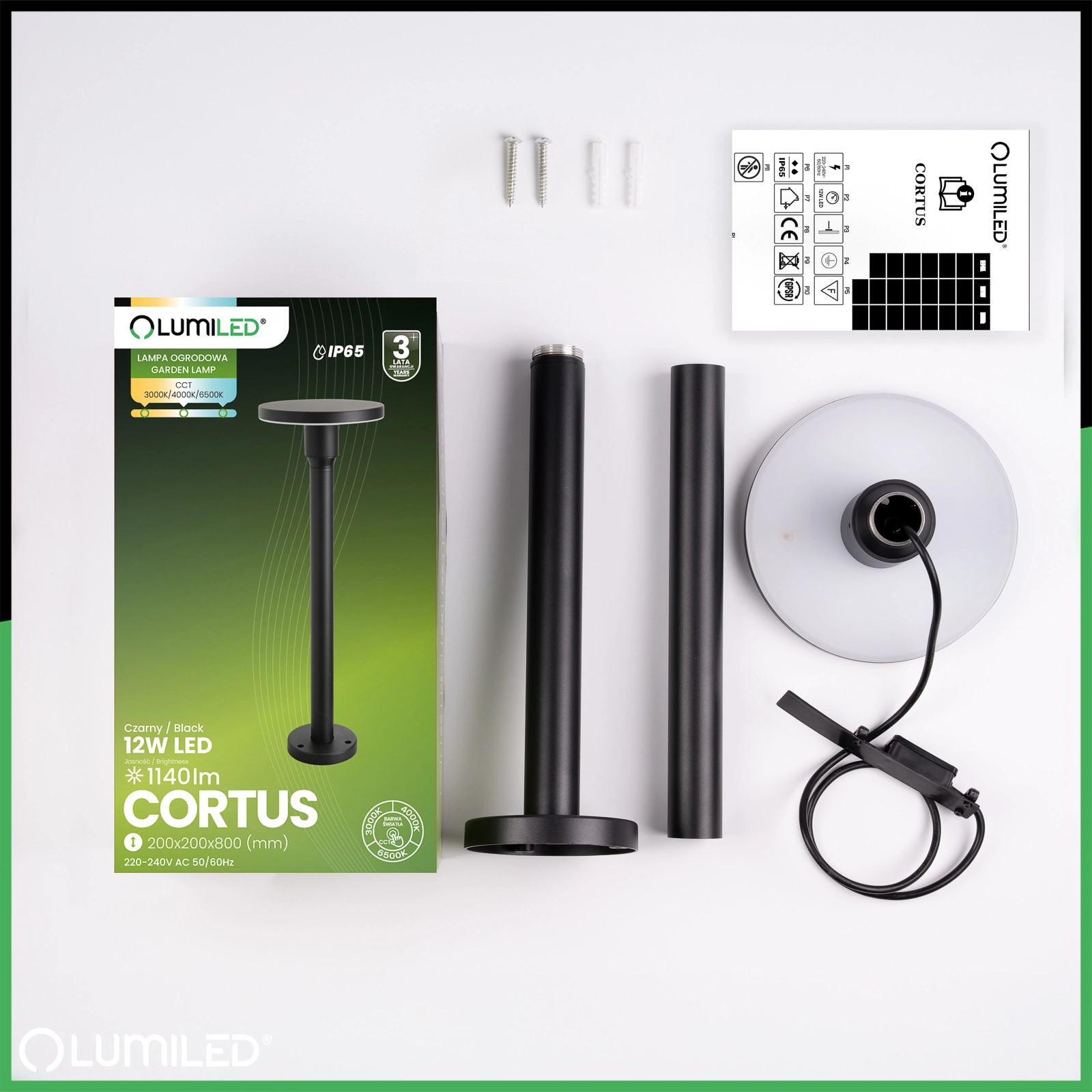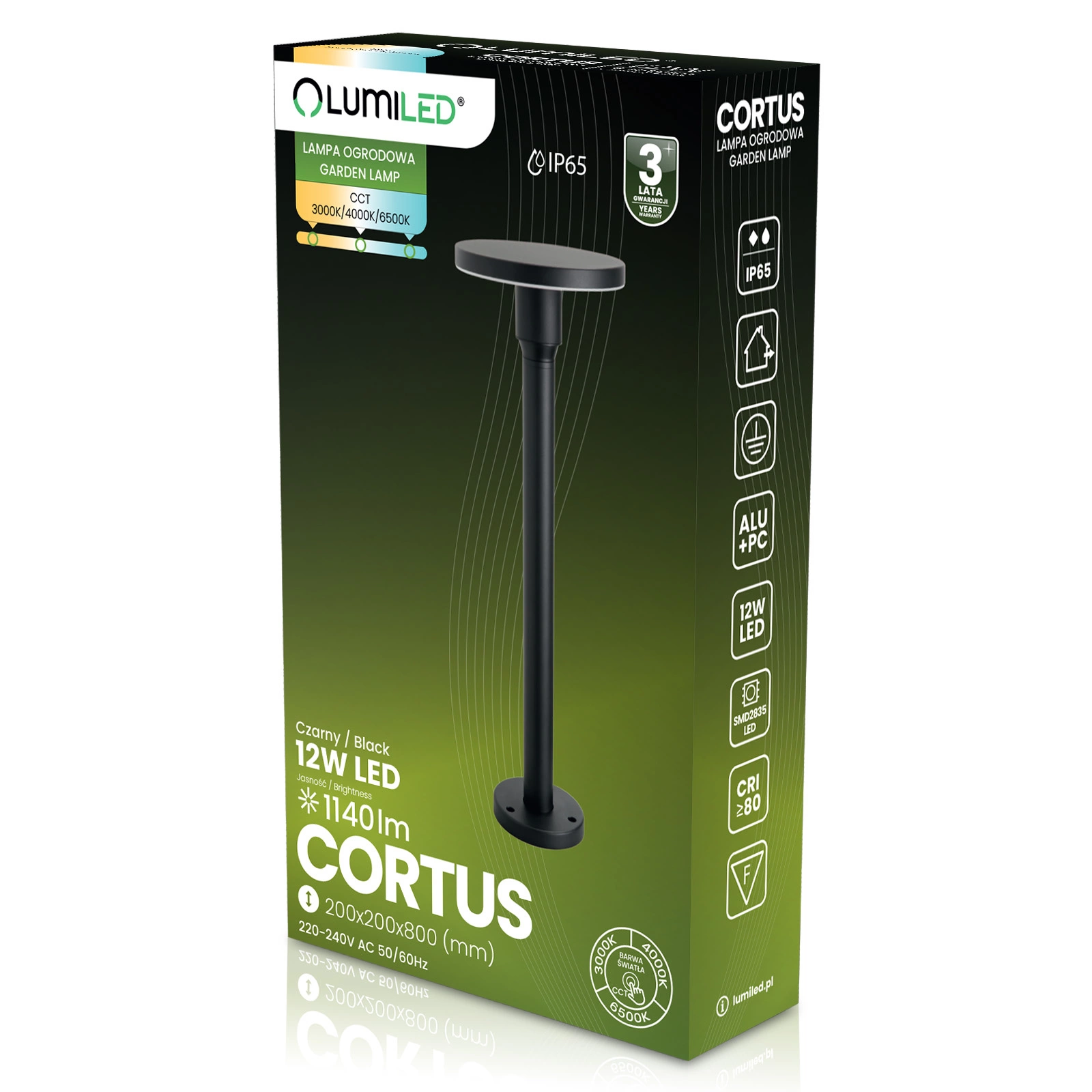 CCT LED 12W 3000-6500K IP65 CORTUS LUMILED venkovní zahradní sloupková lampa