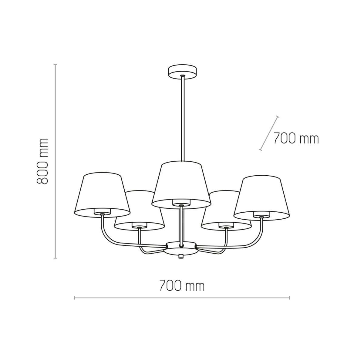 Svítidla Chicago z TK Lighting je kombinací rámu z černého kovu s matnou povrchovou úpravou a látkového stínidla se strukturou přírodního lnu. Ideální pro podkrovní prostory se syrovým charakterem. Skvěle se hodí do ložnice, kuchyně nebo kanceláře. Výrobek je třeba doplnit žárovkou vhodnou pro závit 5xE27.
