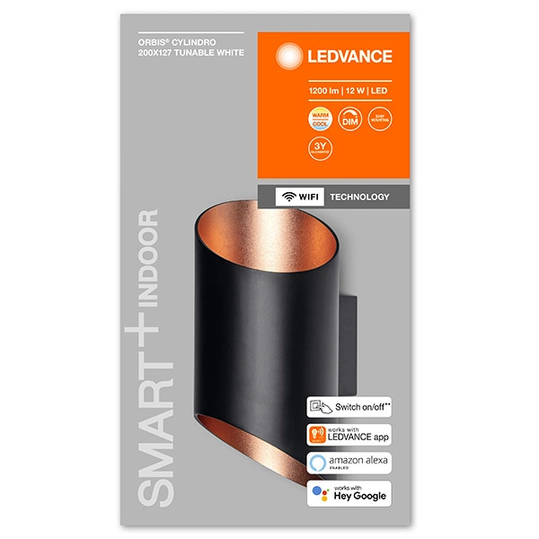 Díky vestavěnému modulu SMART+ WiFi lze nástěnné svítidlo ovládat prostřednictvím aplikace, což nabízí bezkonkurenční uživatelský komfort. Je napájena ze sítě 220-240 V, má třídu ochrany II a krytí IP20, takže je ideální pro použití v interiéru. Snadnou instalaci zajišťuje systém šroubových svorek, zatímco vysoký účiník a nízký jmenovitý proud zaručují efektivní spotřebu energie.