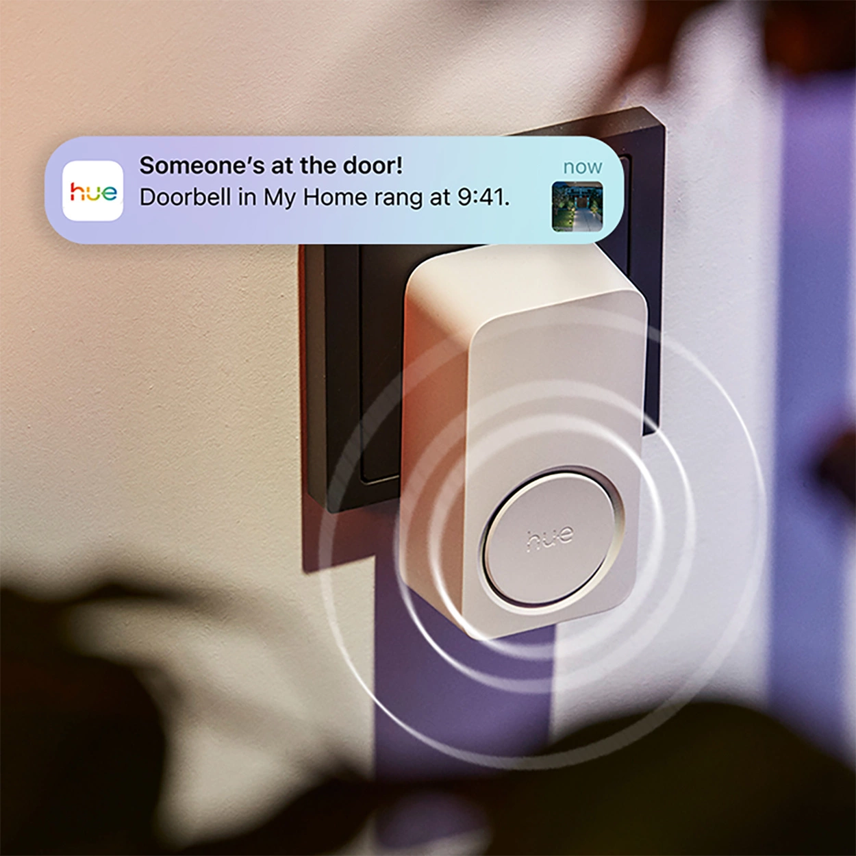 - Integrace s osvětlením Hue: Světla se automaticky rozsvítí nebo blikají při příchodu návštěvníků, což zvyšuje bezpečnost a viditelnost.